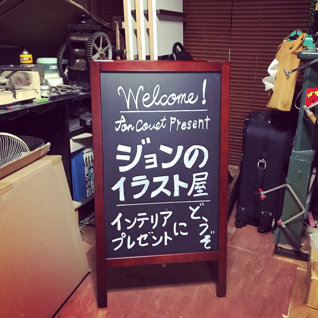 気になっていた看板も消して自宅で寝かせた状態で集中して描きました。二回目にしては上手く描けたんじゃないかと自画自賛(ちょっとジョンのジが大きいけどね)