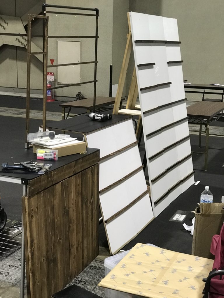 僕はなんでもそうだがシステマチックにすることが好きだ、頭の中でイメージトレーニングをし始めの一歩机に木をネジで取り付けるのだが最初の一歩からつまづきナットを落としてしまった。慌てながらミスを犯しながら進む作業。イメージ通りにいかないの連続(人生というものは厳しいものだ)什器の設置もようやく終わり、商品の展示へ。
