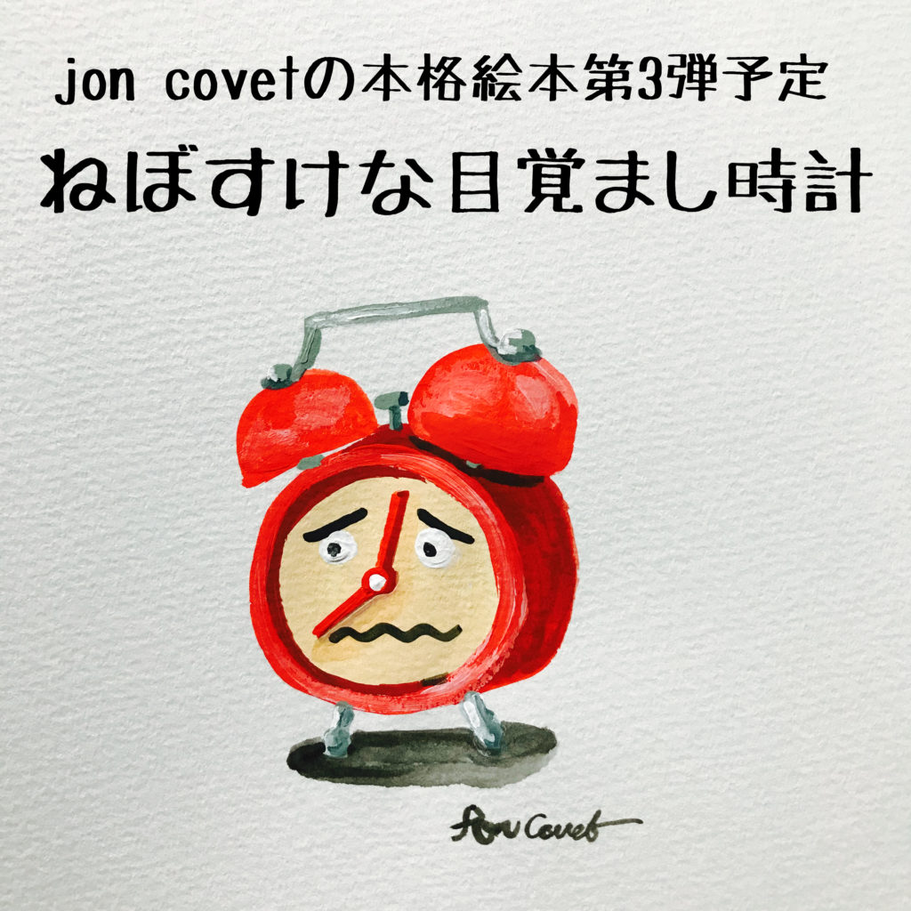 jon covetの絵の具を使った本格絵本第三弾(予定)『ねぼすけな目覚まし時計(仮)』まずはイメージ画を1枚早速描いてみた。