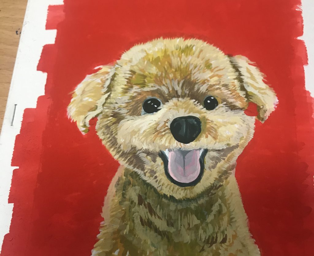 話は変わり実験で描かせてもらった初の試みである絵の具でペットをキャラクターにする「うちの子イラスト」の新バージョンを完成させた。