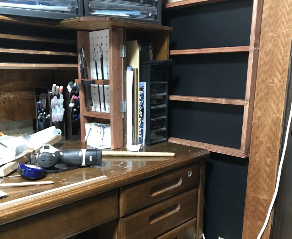 まあこれはこれで良い休日だ。今回作っているのが絵を描く机の改良。昔から日曜大工が好きでよく作っているのだけど最近になり技術が上がったため昔に作ったこの机の品質が気にいらない。思う存分気になるところを直すことができ満足な改良をすることができた。
