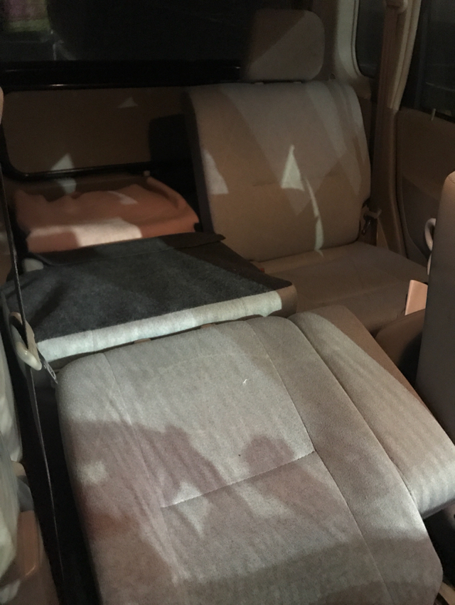 首が曲がってしまい苦しいので後ろの席も倒す必要がでてきた。