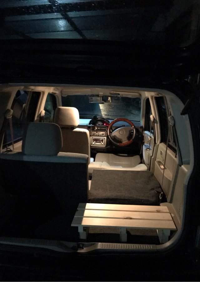 行きついたのが軽自動車に机とベッドを付けちゃえってことでした。