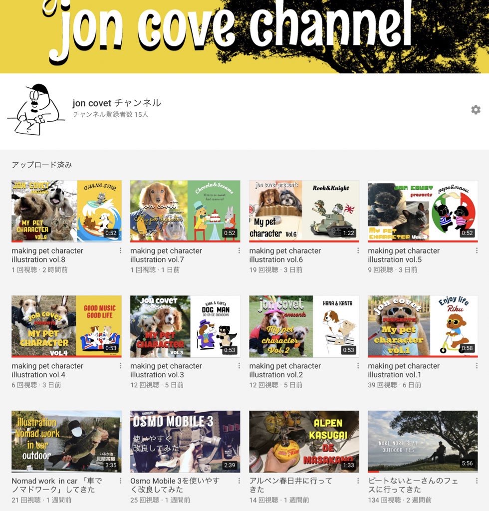 短く定番と言えるようなシンプルな構成にしたかったのと「今日のワンコ」や「世界の車窓」からのように決まった時間に放送されるようなシリーズにしたかった。このワンちゃんたちがこういったイラストになりますってことをスピード感重視で作った。タイトルは「making pet character illustration」日本語もロゴ部分しか使っておらず後は全て英語。視聴者のターゲットは世界の動物好きな人たちだ。