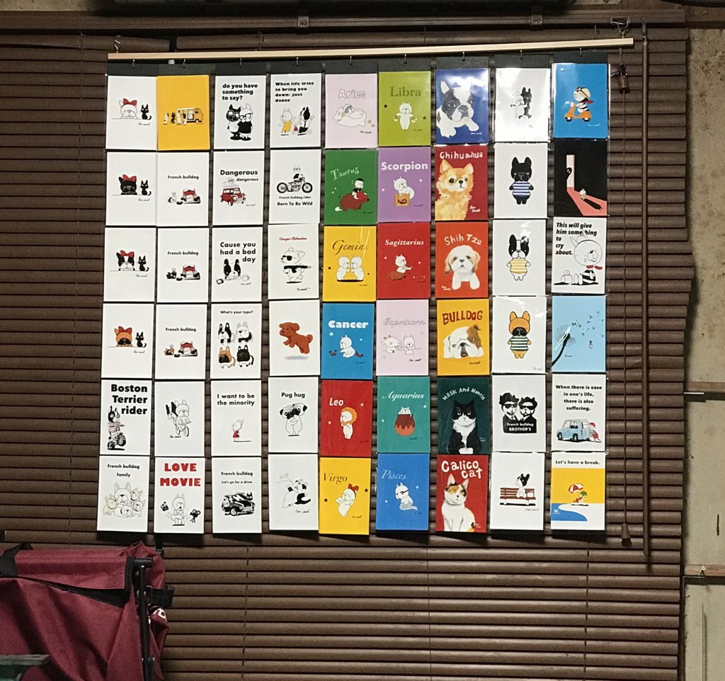 この展示方法ならたくさんの絵を一挙に飾れるのでどのイベントにも使えそうで嬉しい。筒に木を入れていけばそれが什器だ。