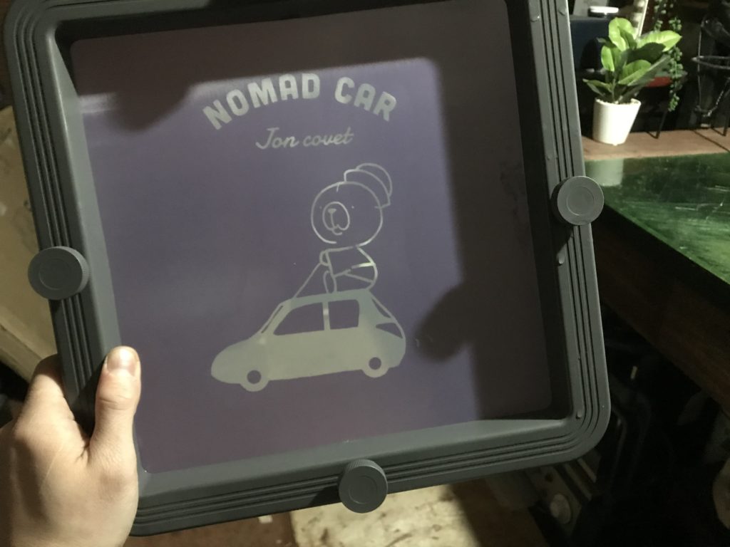 そこからは説明書通りにスクリーンをピンピコピンに張りそこにイラストをスプレーノリで貼り付けて露光をしてみた、びっくりするくらい順調だ。