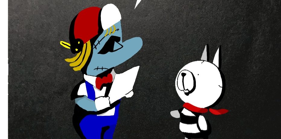 このイラストを書いた時、背景が黒、そこに白いキャラクターで影を濃くしてみた(偶然的に)するとおどろおどろしい感じがしてこいつはいいなと思った。でもやっぱりカラー戦略にしたかったので次の日はカラーだけで表現してみたんだけど、どうも立体感がなくのっぺりした印象。