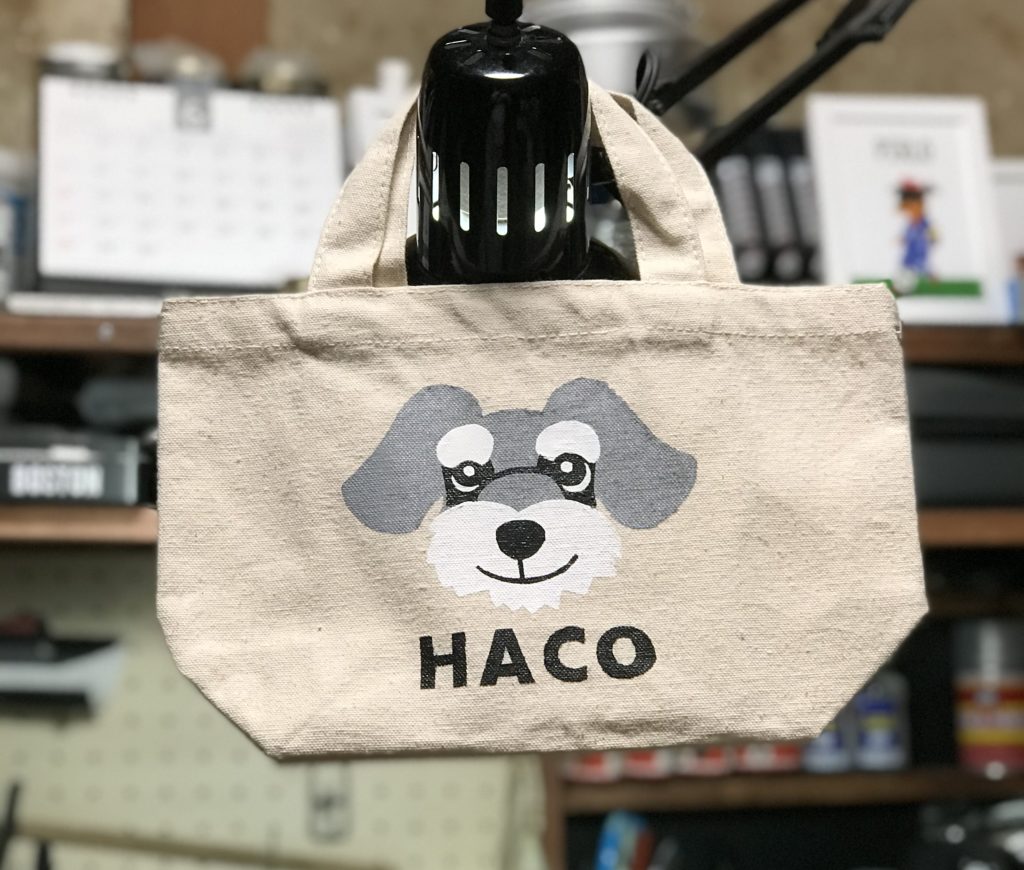 イラストのキリが付いたのでようやく「うちの子バッグ」のサンプルを作り出しました。まずは散歩モデルをお願いしている方の分。