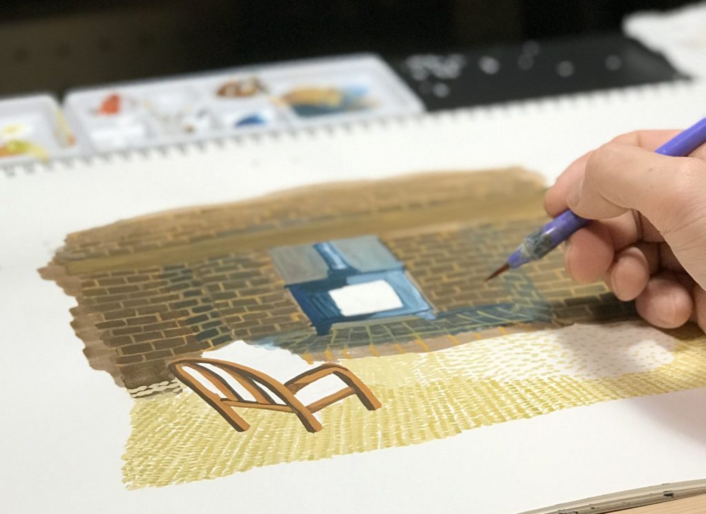 話は変わるがまた絵の具で絵を描き出した。キャンバスがないので大きなスケッチブックに直接。水分で紙はごわつくがなんだろう描くのを止められない。先日買った絵本の影響は大きく自分の絵心に火がついているのがよくわかる。