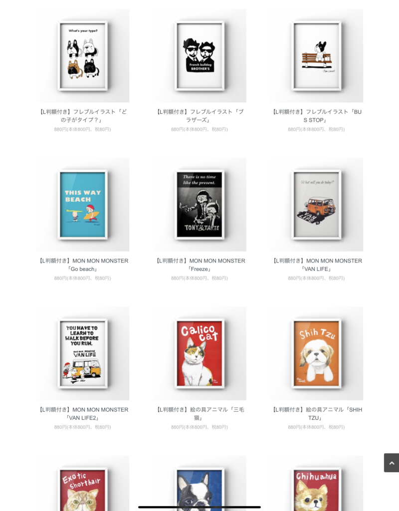 ページ制作と同時にWebショップ自体を大改造した。イベントでしか販売していなかったイラスタンド(額付きイラスト)もラインナップに加え販売開始です(こちらはもう買えます)パッと一覧を見ると自分でも壮観で面白い。今後もイラストを増やしていきたいと思います。