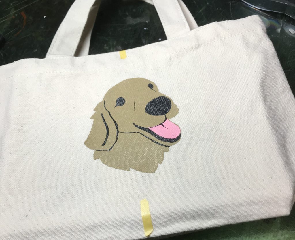 スペース的にはテーブル一つあれば十分作業できる。印刷に使うバッグも既製品だからある程度在庫を持ってもらいプリントに使う道具(インクや筆)もお渡ししておくの。
