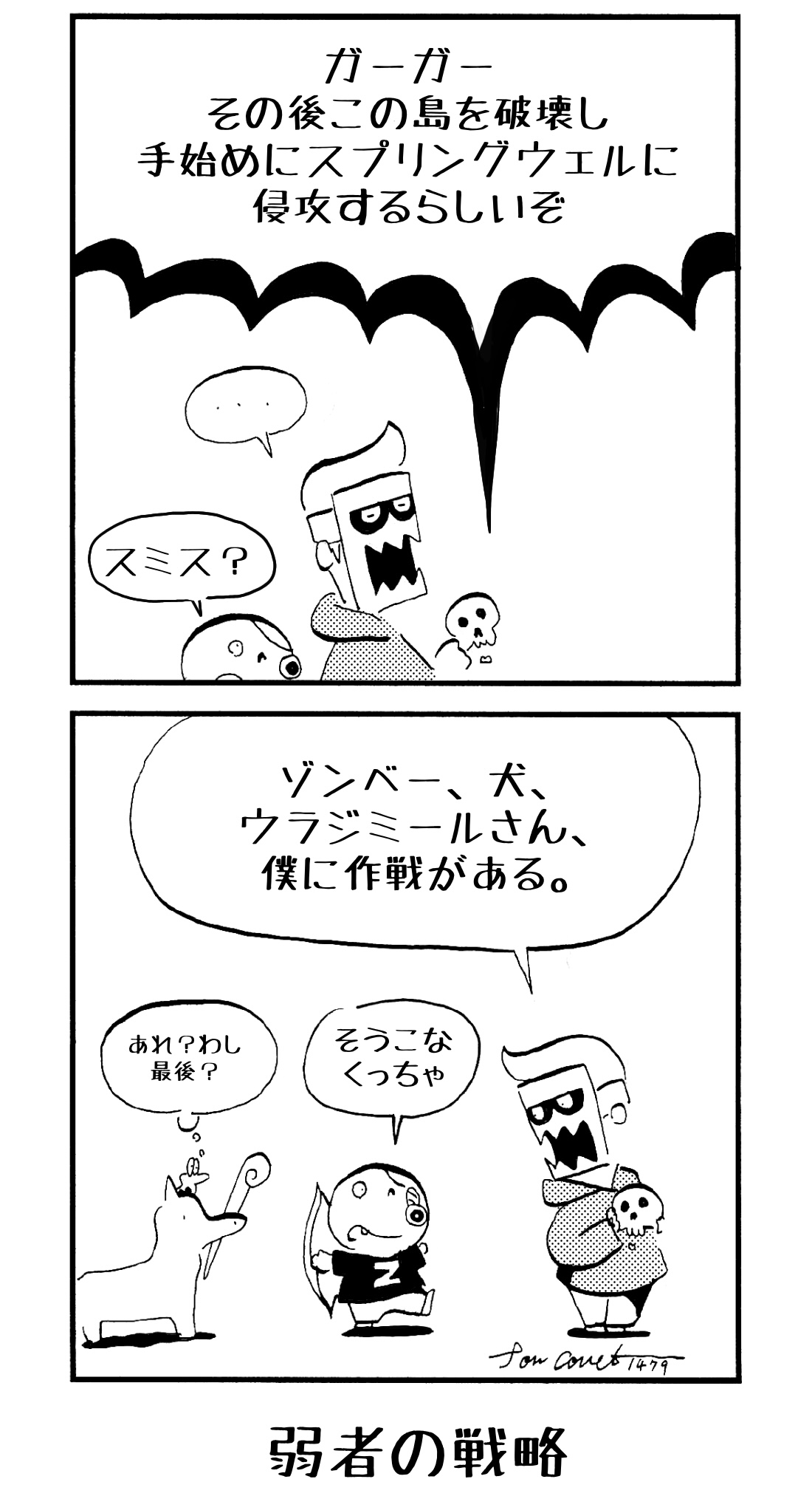 本ブログの永遠のメインコンテンツ。2016年10月31日より連載開始。毎日更新中の4コマ漫画です。あの世とこの世の近い町スプリングウェルにて繰り広げられるモンスターたちの何処かゆるい日常、辛くともたくましく暮らす彼らの活躍無き活躍をご覧ください。