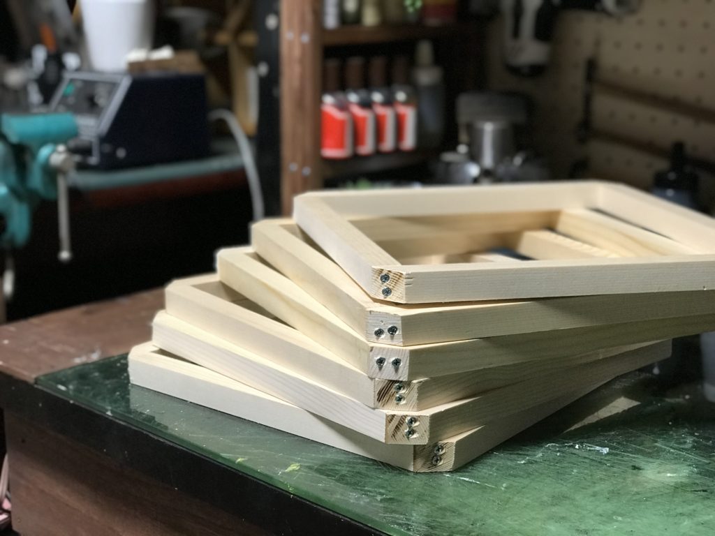 さて今日こそは帰宅をしたらシルクスクリーン印刷の版を作る。休みの間になんとか木枠だけは作ったのでそこに紗を張って露光剤を塗り乾かす。そして明日の朝、描いたデザインで露光して版を作ってみる予定だ。まずはトートバッグを数点作りたい。