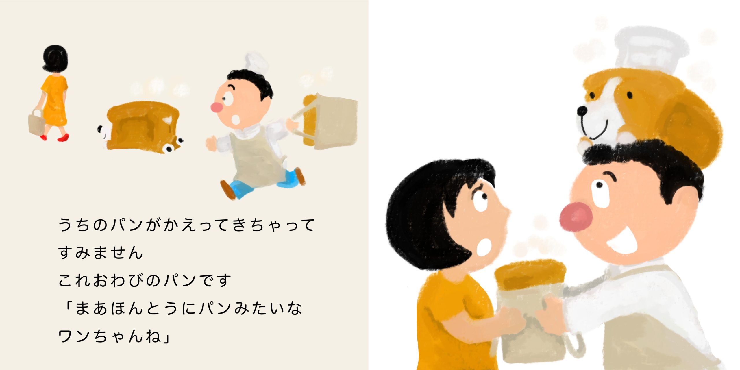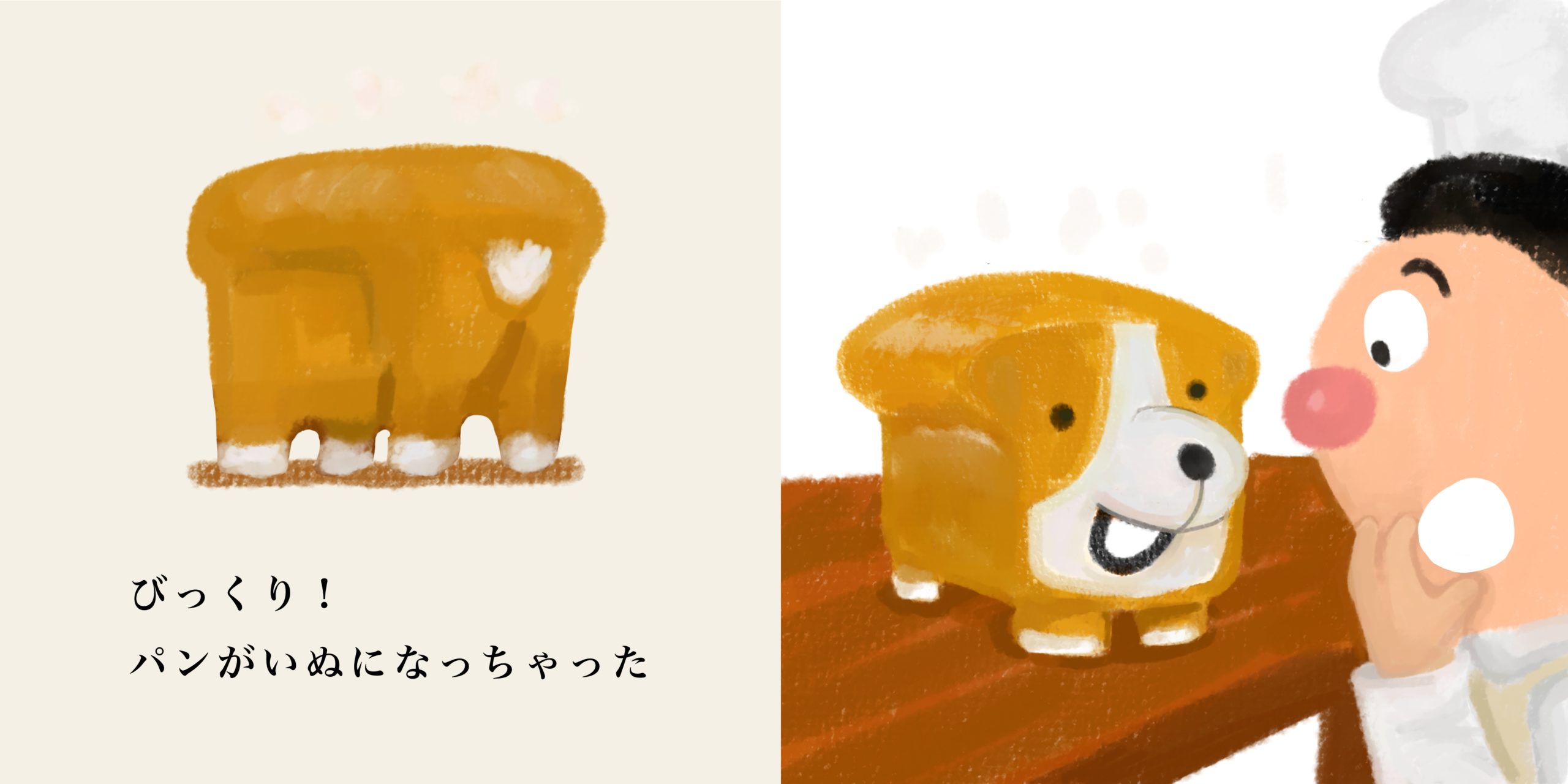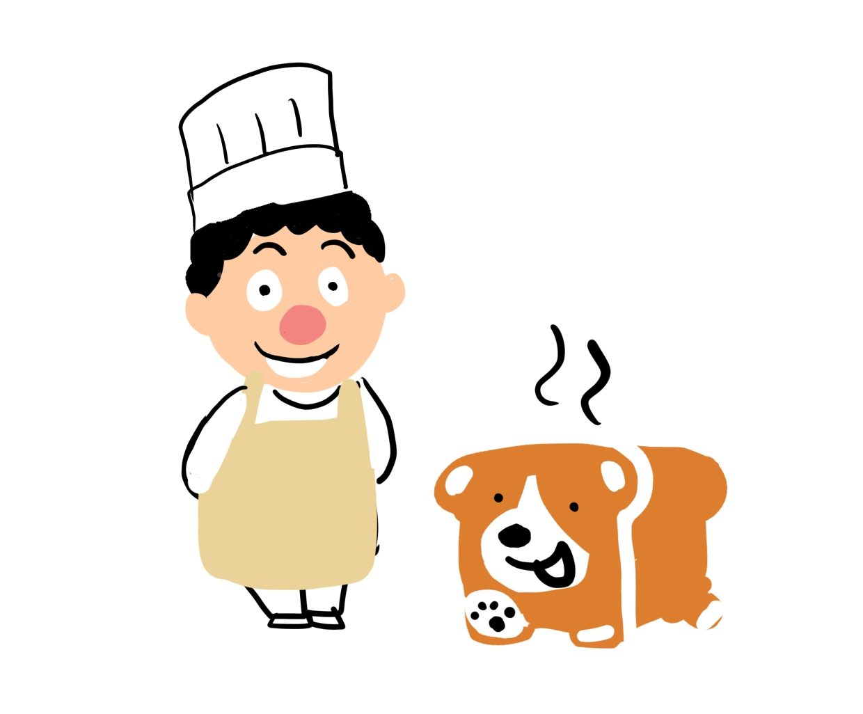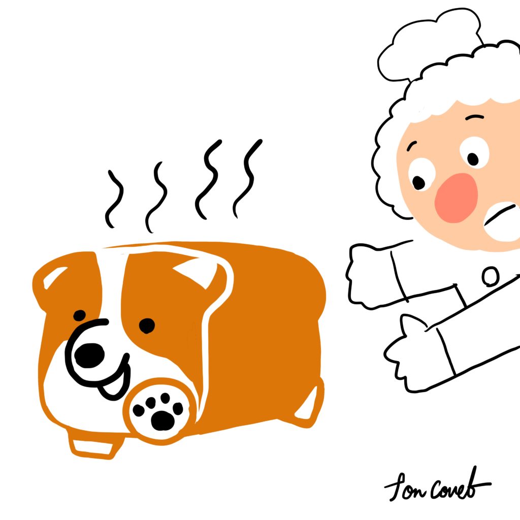 コーギーが食パンに見えるって話を聞き描いたこちらのイラスト(落書き)。