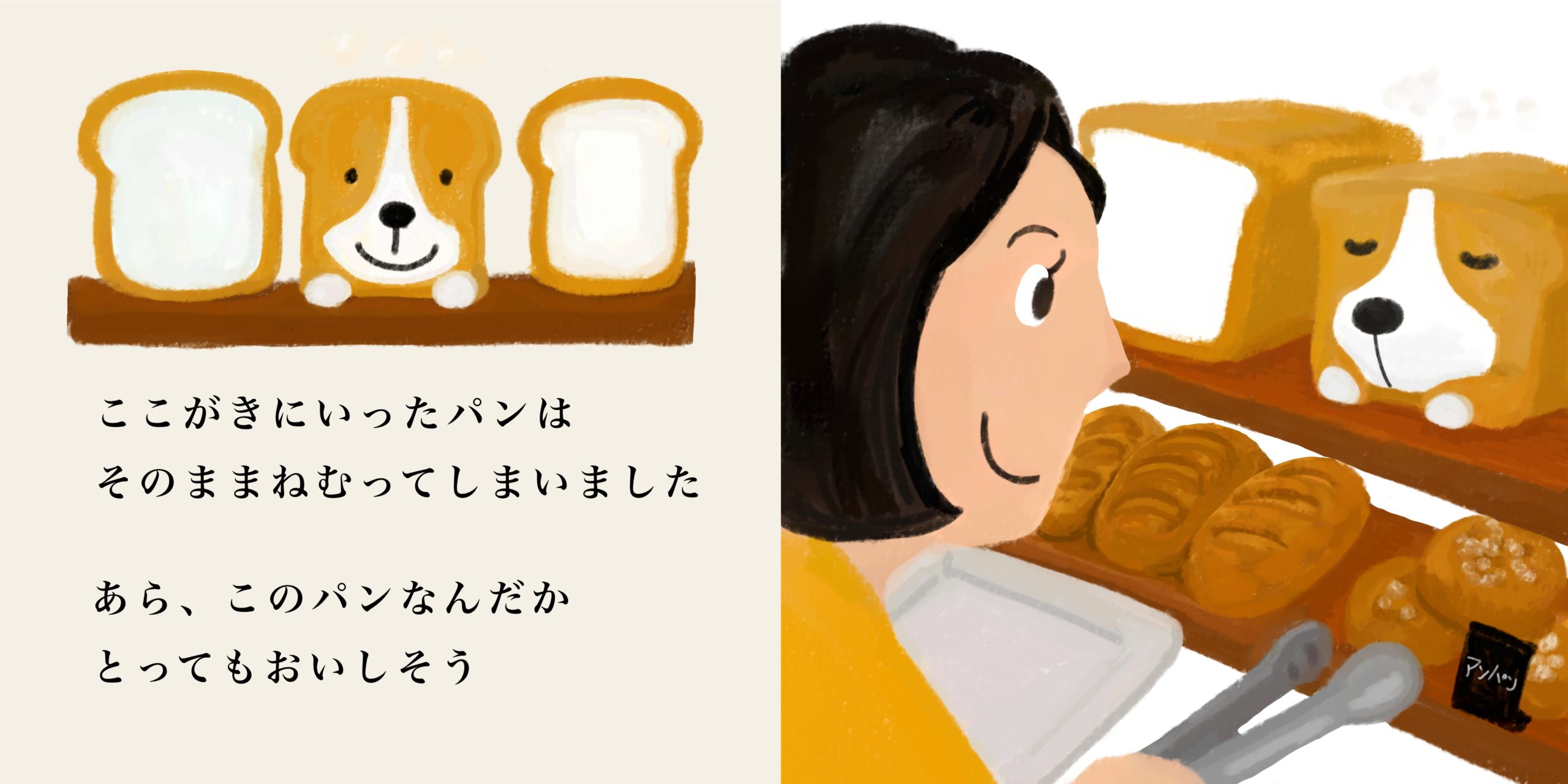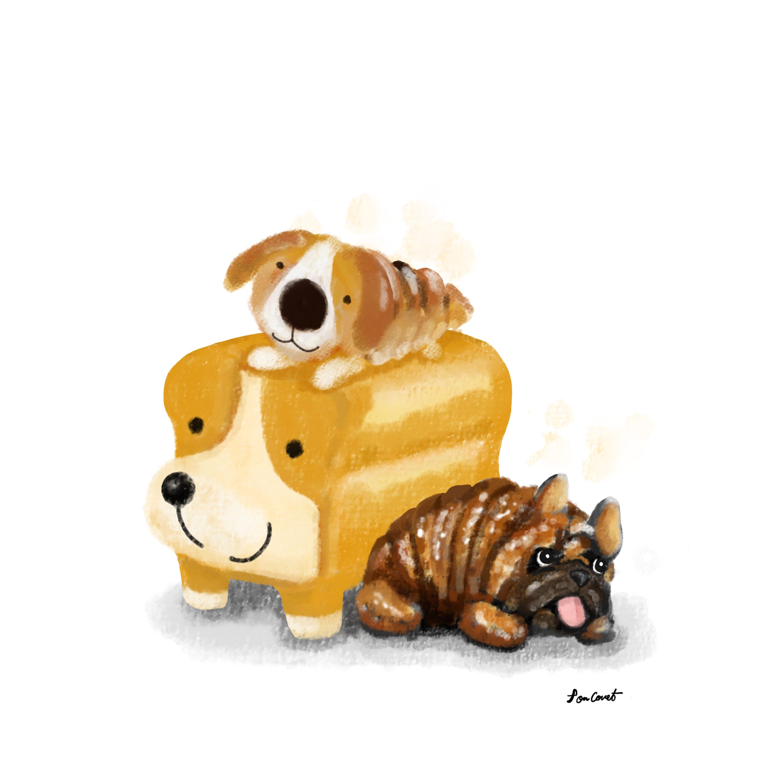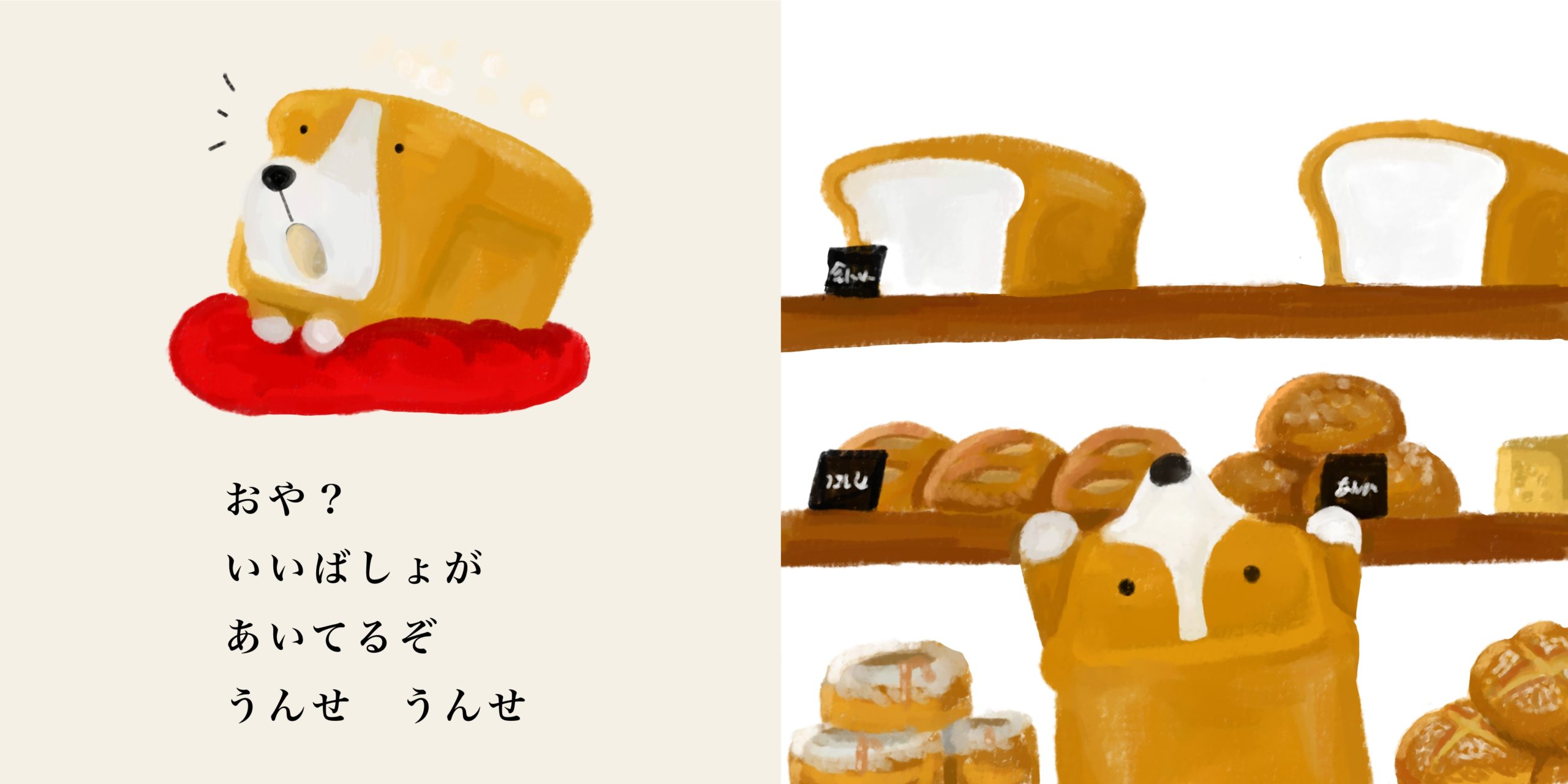 コーギーが食パンに見えるって話を聞き描いたこちらのイラスト(落書き)。