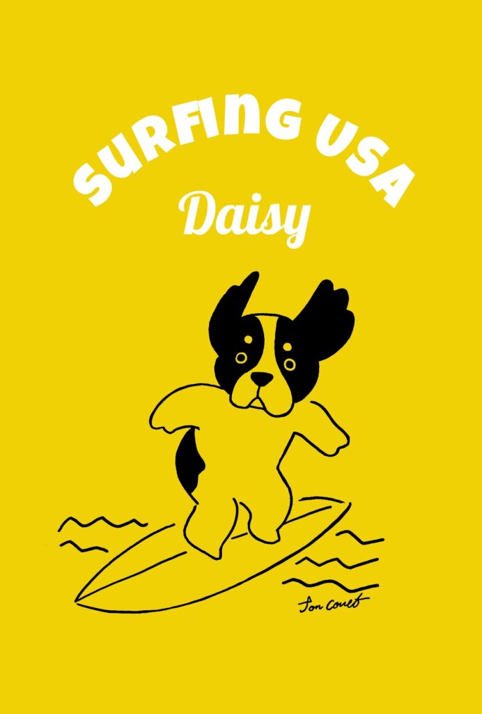 Tシャツ、バッグなどのプリントは自前でできるし、マグカップ など小物展開も発注できるようにする。グッズにして持ち出すことが前提のペットイラスト。
