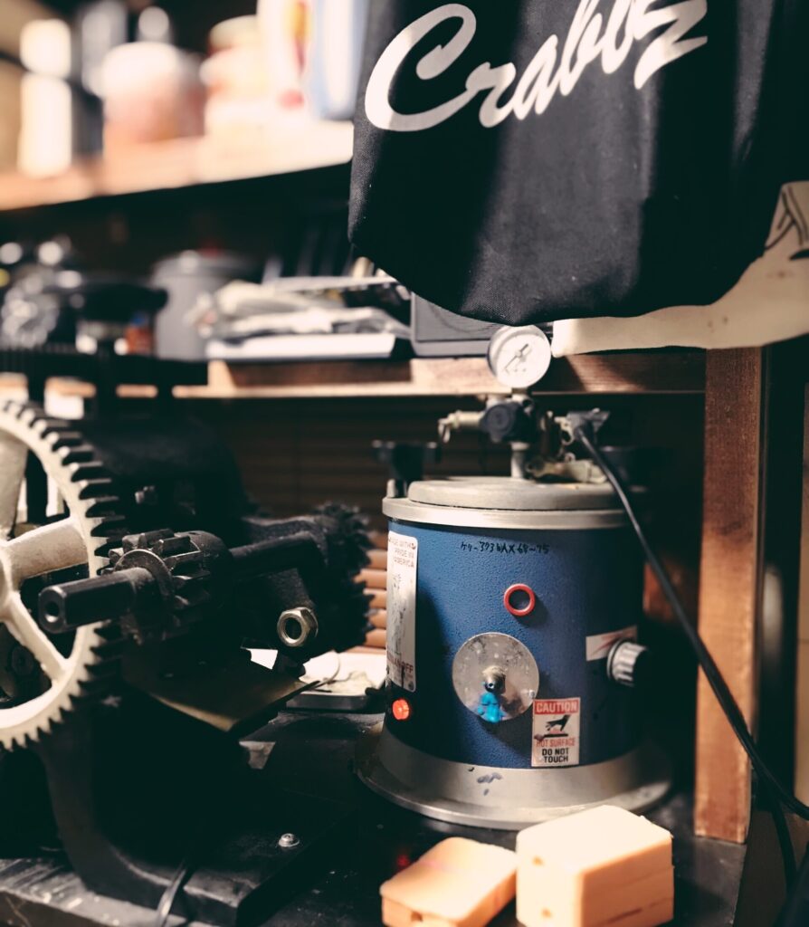 メイドインUSAのこの機械のデザインが無骨で凄く気に入っている。まさにワックスを溶かして噴出するためだけの機械。その目的しかない鉄の塊感が男心を刺激します。