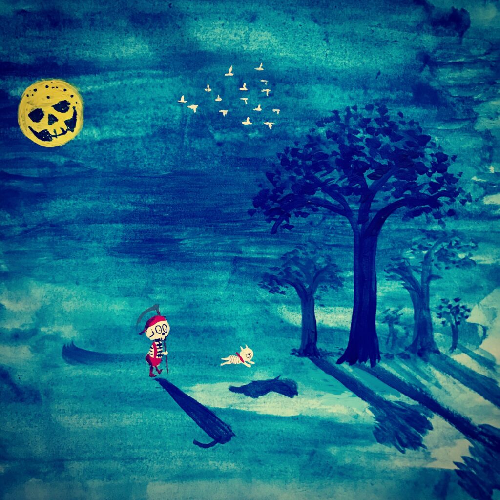 絵の具のMON MON MONSTER作品として初めて描いたこちらの絵は頭のイメージだけで描いた物です。