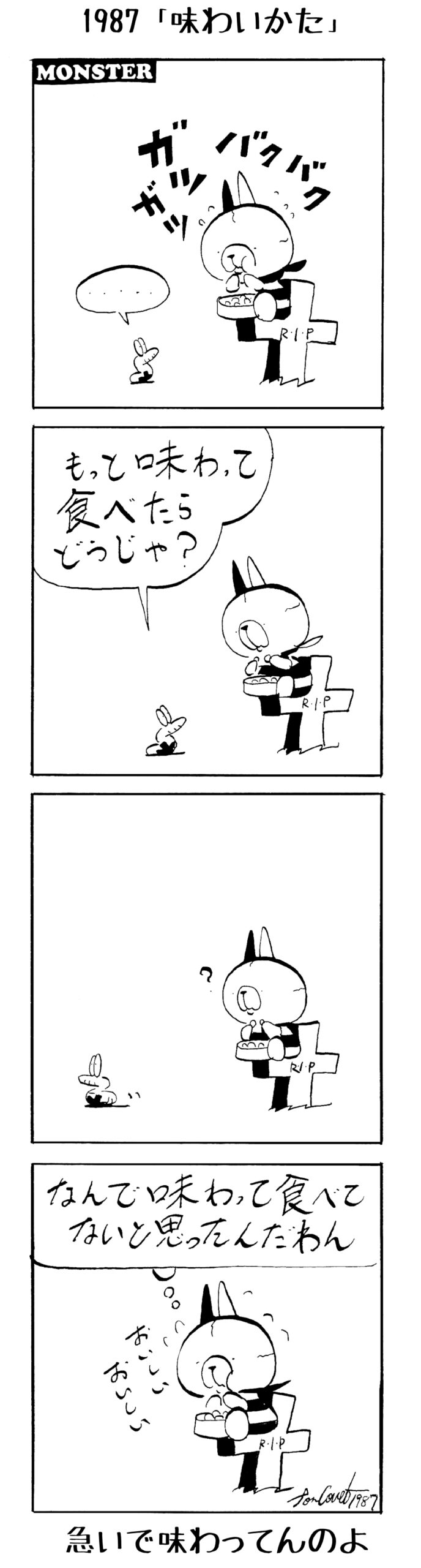 本ブログの永遠のメインコンテンツ。2016年10月31日より連載開始。毎日更新中の4コマ漫画です。あの世とこの世の近い町スプリングウェルにて繰り広げられるモンスターたちの何処かゆるい日常、辛くともたくましく暮らす彼らの活躍無き活躍をご覧ください。