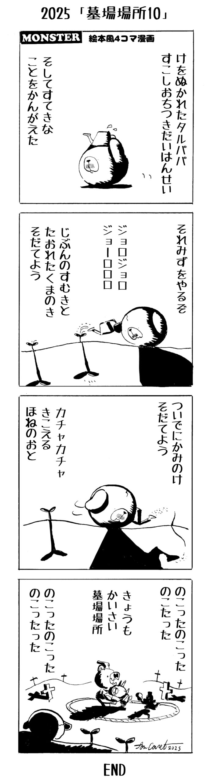 これにて絵本風4コマ漫画タルトの「墓場場所」終了です。