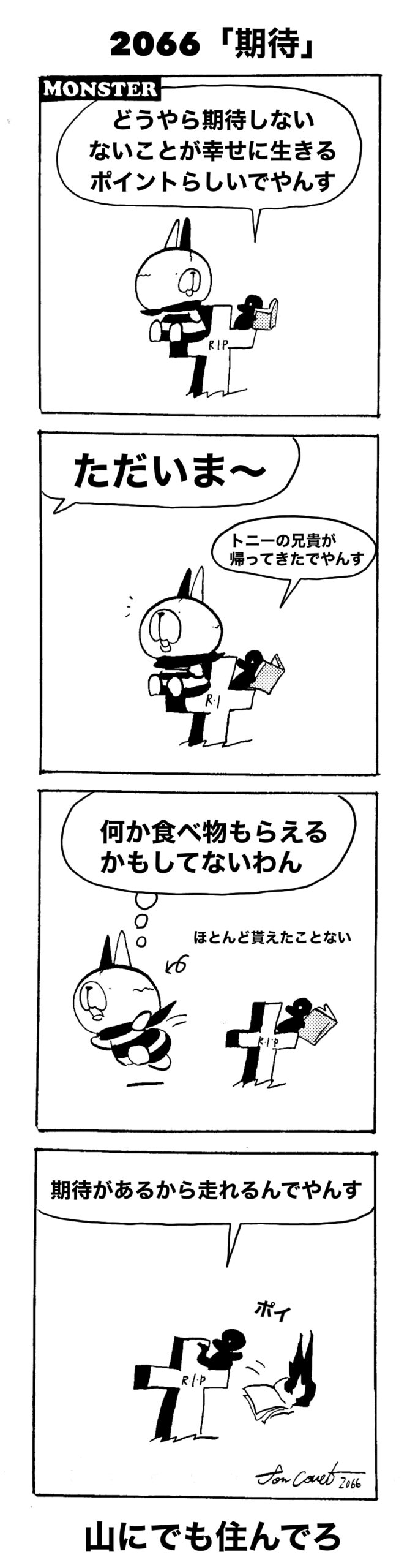 本ブログの永遠のメインコンテンツ。2016年10月31日より連載開始。毎日更新中の4コマ漫画です。あの世とこの世の近い町スプリングウェルにて繰り広げられるモンスターたちの何処かゆるい日常、辛くともたくましく暮らす彼らの活躍無き活躍をご覧ください。