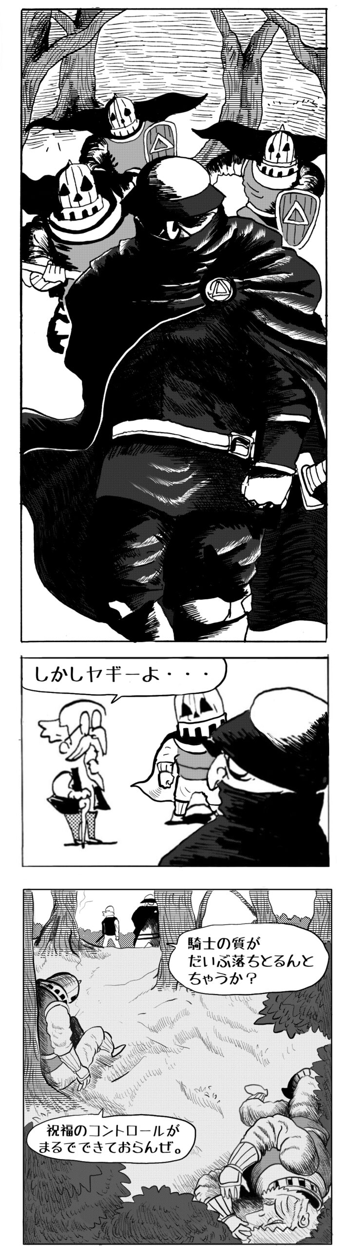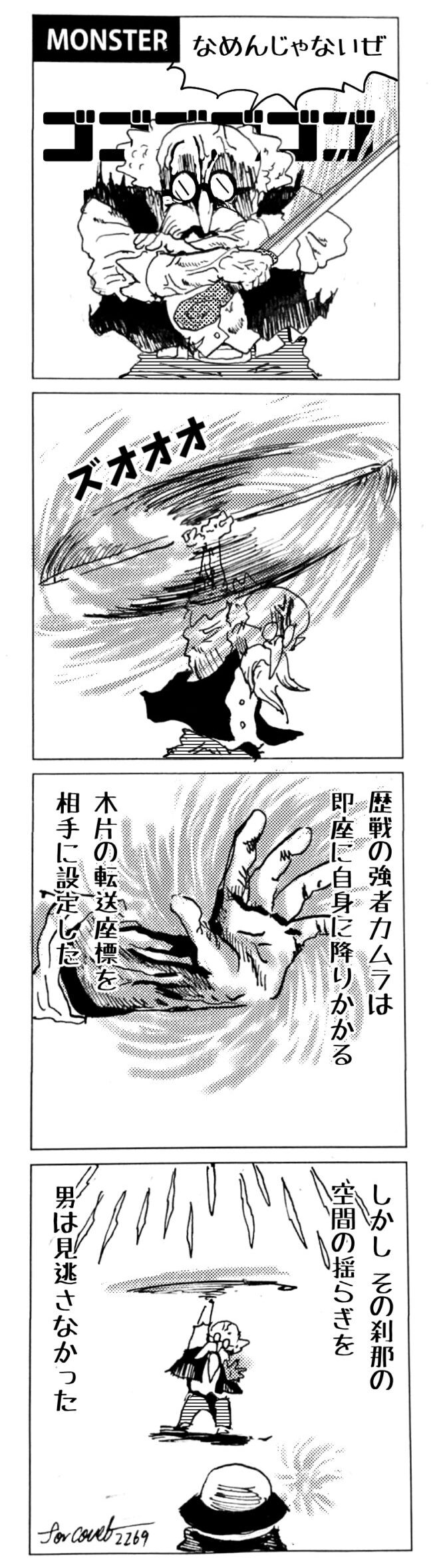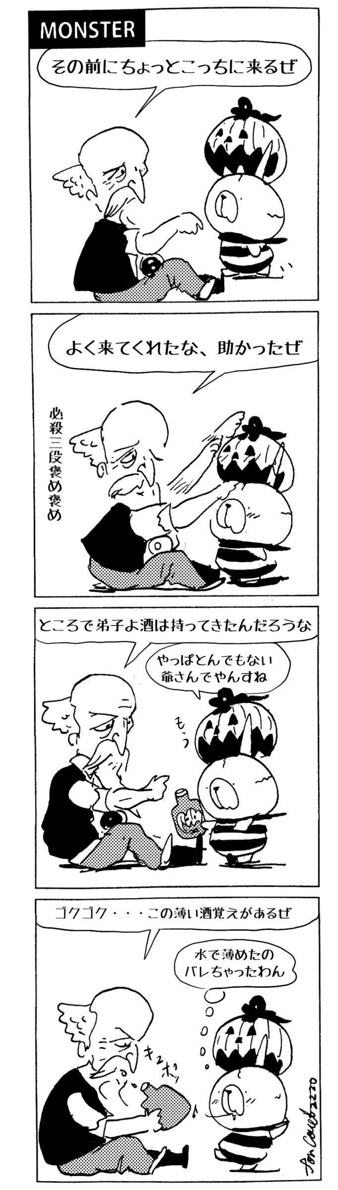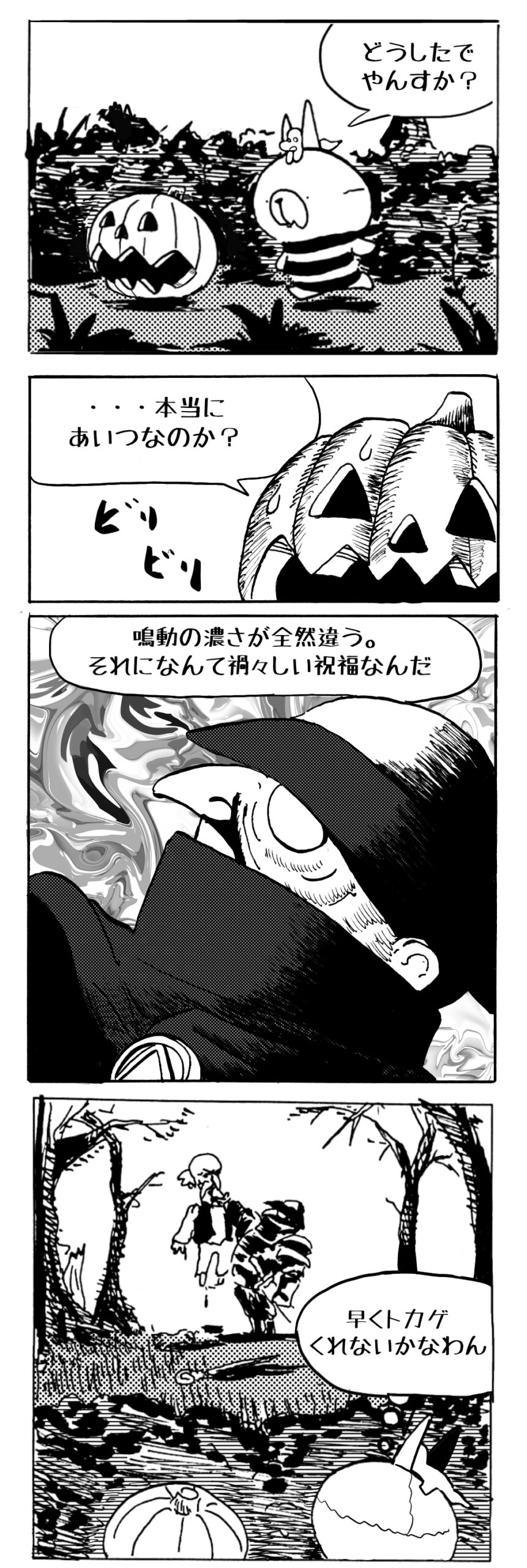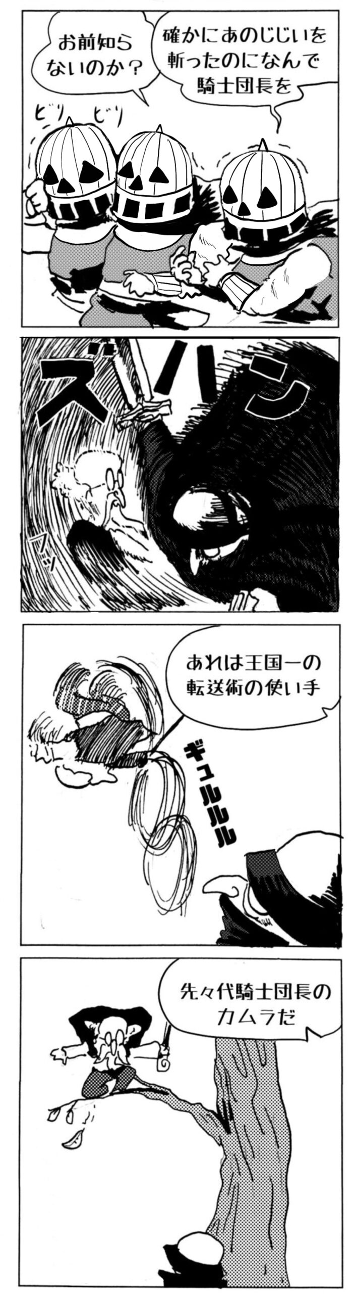 長編シリーズ pickup 【長編】パンプキングダム第一部「パンプキングダムへ」 2022年11月28日 2026年4月10日 jon covet 長編シリーズ【長編】パンプキングダム第一部「パンプキングダムへ」MON MON MONSTER長編シリーズ第七弾。 パンプキングダム第一部 スプリングウェルに突如現れ町をめちゃくちゃにする謎のカボチャ男。そして彼を狙う黒ずくめの男。ひょんなはずみでタルトとサラマンダーも二人のいざこざに巻き込まれてしまい辿り着いた場所は聞いたこともない名前の王国「パンプキングダム... 長編シリーズ【長編】パンプキングダム第二部「戦士の丘」【ここまでのあらすじ】 必死の思いで倒した騎士団長ヤギーにカムラを連れ去られてしまったタルトたち。カムラの最後の言葉は「息子を探せ」。しかし騎士団の副団長であった息子ターナーは先の戦争で亡くなっていることが判明してしまう。しかし一行は一縷の望みを託して墓の場所を知る少女達と共にターナーが眠る墓地「戦... 長編シリーズ【長編】パンプキングダム第三部「ダンの研究所」【ここまでのあらすじ】 戦士の丘で再び襲ってきた騎士団長ヤギーだったがなぜかサラのバッグを狙う盗賊ケンにより逃走に成功する。実はケンこそがカムラの双子の息子のもう一人であることが判明する。伝説のラビットルに乗り一行はひとまず身を隠すためにサラの父親ダンの研究所に向かったのであった・・・ 第三部「ダ... 長編シリーズ【長編】パンプキングダム第四部「カブリエルとユスター」 【ここまでのあらすじ】 ダンの秘密の研究所に身を隠した一行だったがなぜか騎士団に居処がバレてしまった。迫り来る騎士団をケンとマルフーで圧倒するも謎の鉄仮面の男により全滅をしてしまう。すんでのところで命を取り留めたケンと城に連れ去られたユスターたち。ジッパー君を通してユスターをが過去、そして現在に何... 長編シリーズ【長編】パンプキングダム第五部【ここまでのあらすじ】 暗躍する謎多きカボタリアン、カブリエルにより国を奪われたユスター。一人地下牢で過ごす中で時空を越える妹と同じ力を持ったノレイ王子と出会う。そして彼の力を使い現代に時間転送したのであった。 第一部「時空間転送」 第一章「騎士団長カムラ」 第二章「ノレイの覚醒」 第三章「予期せ... 長編シリーズ【長編】パンプキングダム第六部MON MON MONSTER長編シリーズ第七弾 パンプキングダム第六部 【ここまでのあらすじ】 暗躍する謎多きカボタリアン、カブリエルにより国を奪われたユスター。一人地下牢で過ごす中で時空を越える妹と同じ力を持ったノレイ王子と出会う。そして彼の力を使い現代に時間転送したのであった。 ... 長編シリーズ【長編】パンプキングダム第七部MON MON MONSTER長編シリーズ第七弾 パンプキングダム第七部 【ここまでのあらすじ】 何かを企む現パンプキングダム王ジョソウ。城に潜入したケンだったが無事皆を救出するもそこには狂科学者現騎士団科学部隊隊長のソウムが立ち塞がる。ランタンに火を灯され殺戮マシーンとなったマルフーに殴られ昔... 絵コンテ【長編】パンプキングダム第八部MON MON MONSTER長編シリーズ第七弾 パンプキングダム第八部 【ここまでのあらすじ】 戦いの中で自分がなぜ騎士団になりたかったのかを思い出したケン。伝説の名刀テスターを譲り受け親友のマルフーの動きを止めることに成功したのも束の間、和解したばかりの父の胸を怪人13号の拳が貫いた。 ... 絵コンテ【長編】パンプキングダム第九部ちMON MON MONSTER長編シリーズ第九弾 パンプキングダム第九部 【ここまでのあらすじ】 怒りに燃えるマルフーの拳が城の祝福に火をつけこのままでは大爆発を起こし大陸ごと吹き飛ばしてしまうかもしれない緊急事態に。使命を取り戻した騎士団が暴君ジョソウに反旗を翻し国民を助けるため奔走する中で死ん... 第一部「パンプキングダムへ」 第一章「黒い騎士襲来」 第二章「血のハロウィン」 第三章「カボテン山の戦い」 第四章「カボチャの王子」 第三章「カボテン山の戦い」 第三章「カボテン山の戦い」 次のページ 1 2 3 4 Facebook Twitter はてブ Pocket Feedly