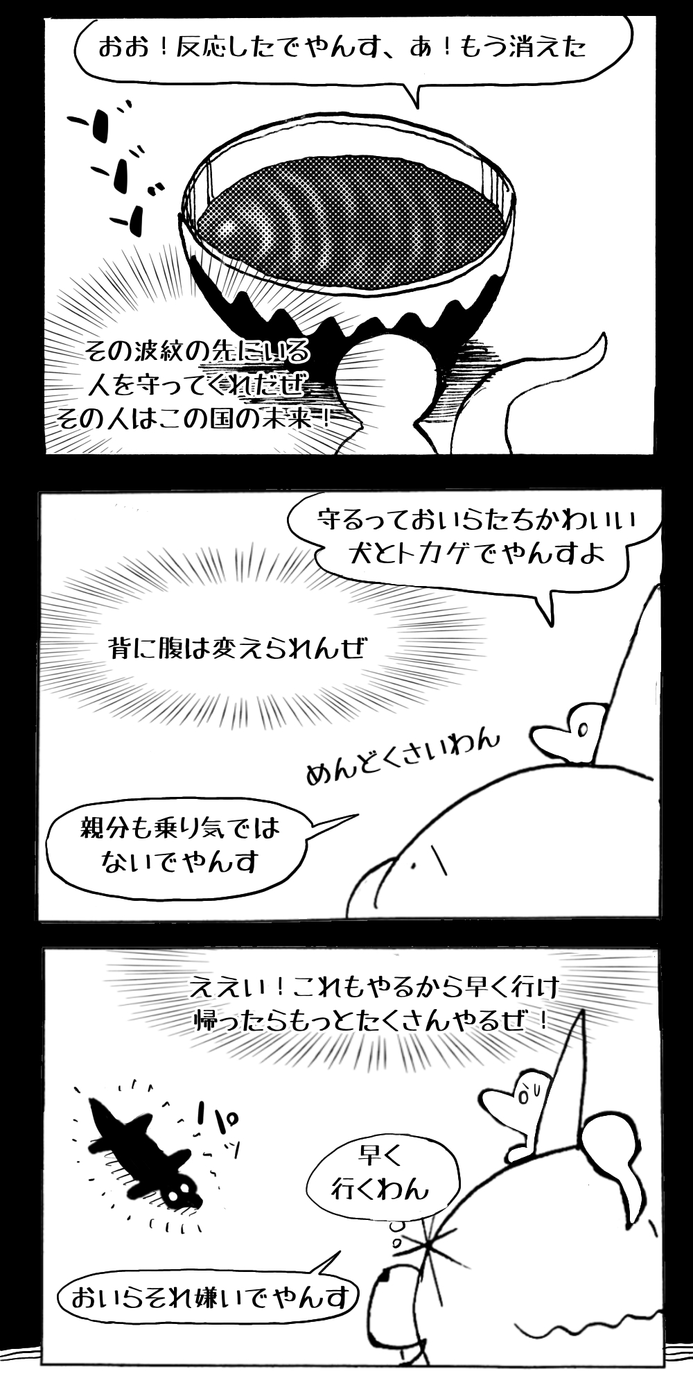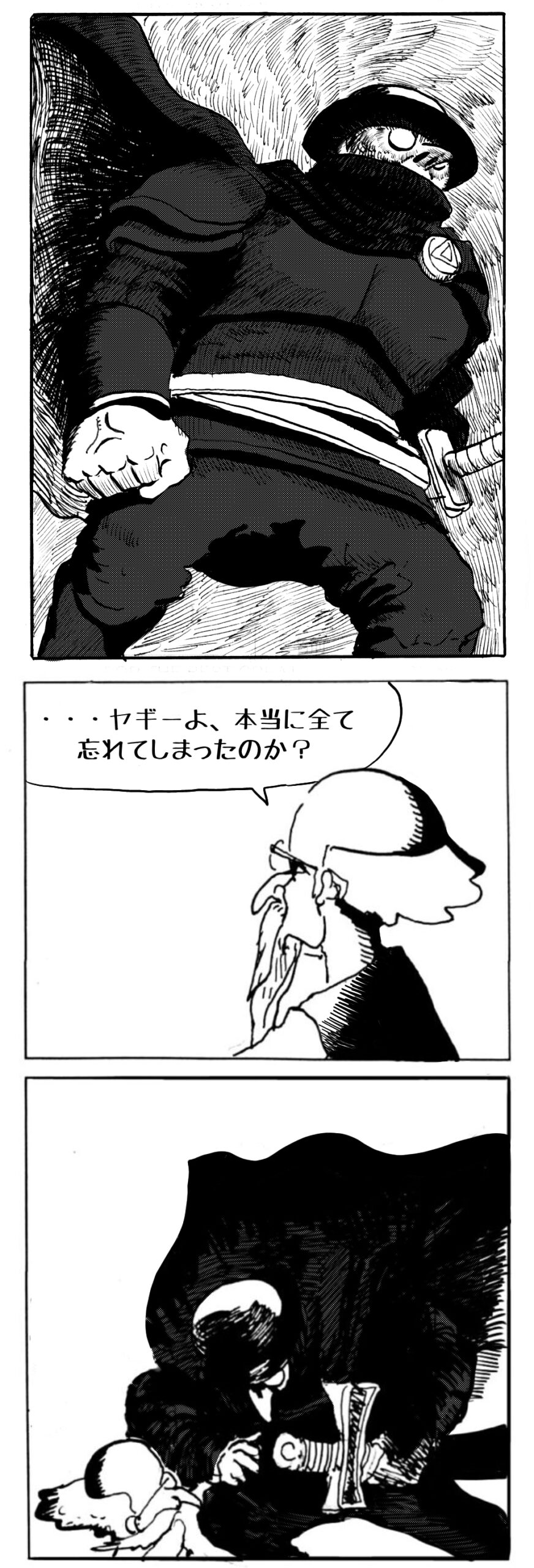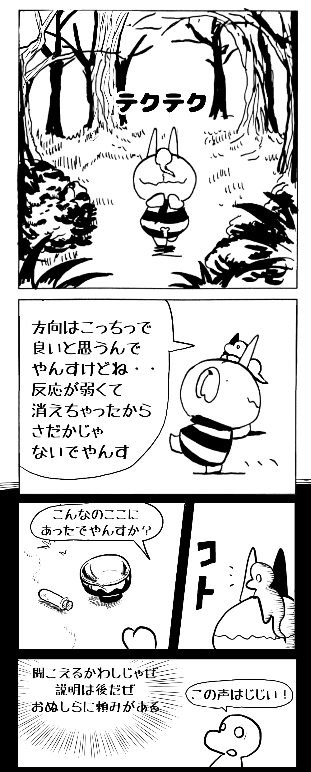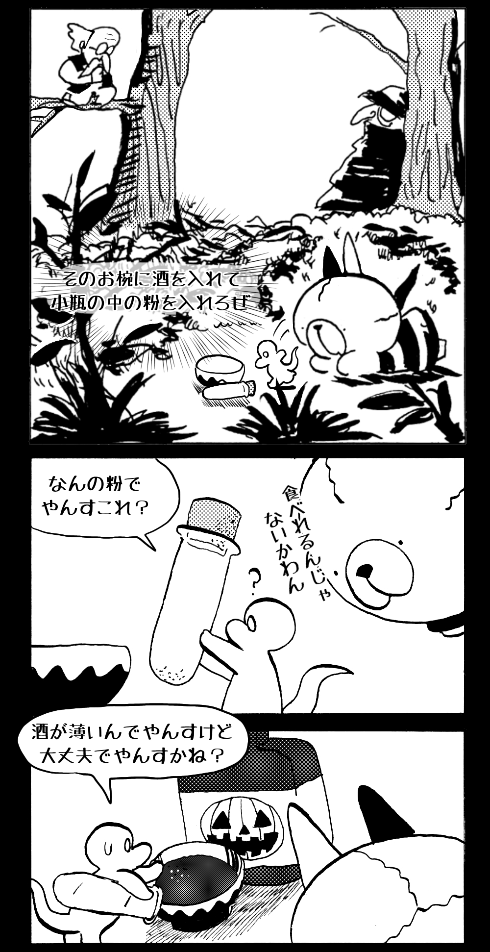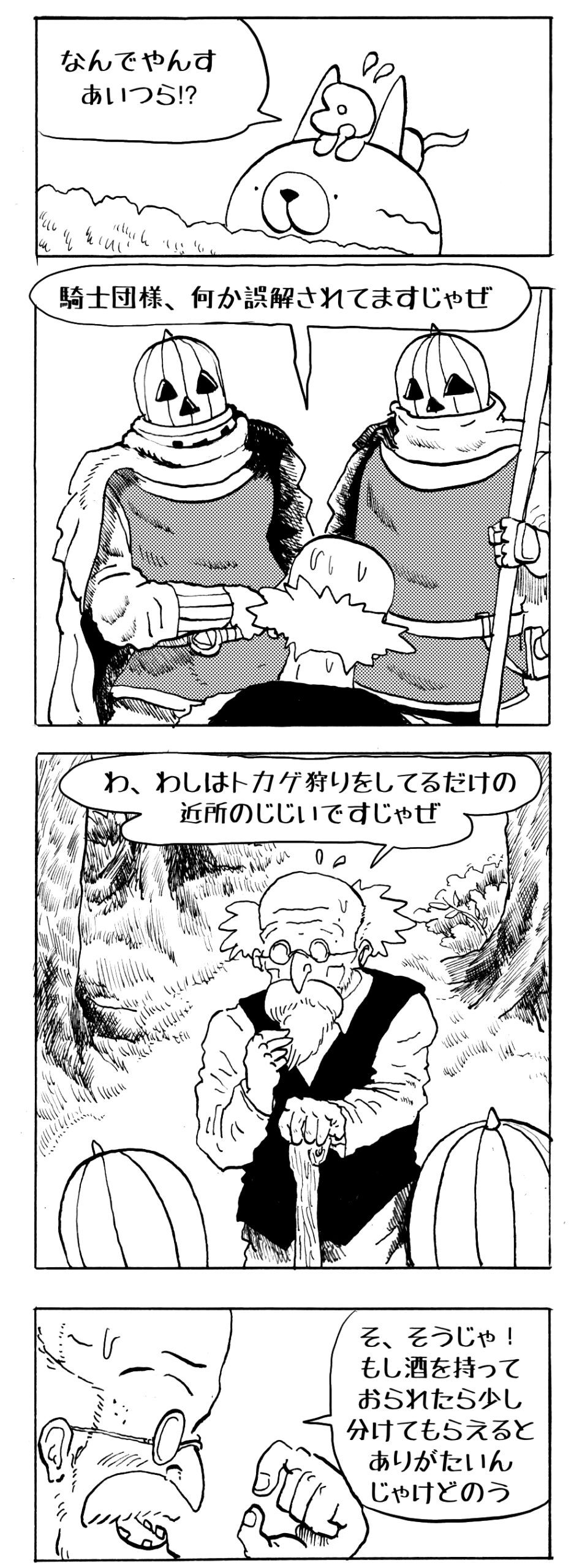 長編シリーズ pickup 【長編】パンプキングダム第一部「パンプキングダムへ」 2022年11月28日 2026年4月10日 jon covet 長編シリーズ【長編】パンプキングダム第一部「パンプキングダムへ」MON MON MONSTER長編シリーズ第七弾。 パンプキングダム第一部 スプリングウェルに突如現れ町をめちゃくちゃにする謎のカボチャ男。そして彼を狙う黒ずくめの男。ひょんなはずみでタルトとサラマンダーも二人のいざこざに巻き込まれてしまい辿り着いた場所は聞いたこともない名前の王国「パンプキングダム... 長編シリーズ【長編】パンプキングダム第二部「戦士の丘」【ここまでのあらすじ】 必死の思いで倒した騎士団長ヤギーにカムラを連れ去られてしまったタルトたち。カムラの最後の言葉は「息子を探せ」。しかし騎士団の副団長であった息子ターナーは先の戦争で亡くなっていることが判明してしまう。しかし一行は一縷の望みを託して墓の場所を知る少女達と共にターナーが眠る墓地「戦... 長編シリーズ【長編】パンプキングダム第三部「ダンの研究所」【ここまでのあらすじ】 戦士の丘で再び襲ってきた騎士団長ヤギーだったがなぜかサラのバッグを狙う盗賊ケンにより逃走に成功する。実はケンこそがカムラの双子の息子のもう一人であることが判明する。伝説のラビットルに乗り一行はひとまず身を隠すためにサラの父親ダンの研究所に向かったのであった・・・ 第三部「ダ... 長編シリーズ【長編】パンプキングダム第四部「カブリエルとユスター」 【ここまでのあらすじ】 ダンの秘密の研究所に身を隠した一行だったがなぜか騎士団に居処がバレてしまった。迫り来る騎士団をケンとマルフーで圧倒するも謎の鉄仮面の男により全滅をしてしまう。すんでのところで命を取り留めたケンと城に連れ去られたユスターたち。ジッパー君を通してユスターをが過去、そして現在に何... 長編シリーズ【長編】パンプキングダム第五部【ここまでのあらすじ】 暗躍する謎多きカボタリアン、カブリエルにより国を奪われたユスター。一人地下牢で過ごす中で時空を越える妹と同じ力を持ったノレイ王子と出会う。そして彼の力を使い現代に時間転送したのであった。 第一部「時空間転送」 第一章「騎士団長カムラ」 第二章「ノレイの覚醒」 第三章「予期せ... 長編シリーズ【長編】パンプキングダム第六部MON MON MONSTER長編シリーズ第七弾 パンプキングダム第六部 【ここまでのあらすじ】 暗躍する謎多きカボタリアン、カブリエルにより国を奪われたユスター。一人地下牢で過ごす中で時空を越える妹と同じ力を持ったノレイ王子と出会う。そして彼の力を使い現代に時間転送したのであった。 ... 長編シリーズ【長編】パンプキングダム第七部MON MON MONSTER長編シリーズ第七弾 パンプキングダム第七部 【ここまでのあらすじ】 何かを企む現パンプキングダム王ジョソウ。城に潜入したケンだったが無事皆を救出するもそこには狂科学者現騎士団科学部隊隊長のソウムが立ち塞がる。ランタンに火を灯され殺戮マシーンとなったマルフーに殴られ昔... 絵コンテ【長編】パンプキングダム第八部MON MON MONSTER長編シリーズ第七弾 パンプキングダム第八部 【ここまでのあらすじ】 戦いの中で自分がなぜ騎士団になりたかったのかを思い出したケン。伝説の名刀テスターを譲り受け親友のマルフーの動きを止めることに成功したのも束の間、和解したばかりの父の胸を怪人13号の拳が貫いた。 ... 絵コンテ【長編】パンプキングダム第九部ちMON MON MONSTER長編シリーズ第九弾 パンプキングダム第九部 【ここまでのあらすじ】 怒りに燃えるマルフーの拳が城の祝福に火をつけこのままでは大爆発を起こし大陸ごと吹き飛ばしてしまうかもしれない緊急事態に。使命を取り戻した騎士団が暴君ジョソウに反旗を翻し国民を助けるため奔走する中で死ん... 第一部「パンプキングダムへ」 第一章「黒い騎士襲来」 第二章「血のハロウィン」 第三章「カボテン山の戦い」 第四章「カボチャの王子」 第三章「カボテン山の戦い」 第三章「カボテン山の戦い」 次のページ 1 2 3 4 Facebook Twitter はてブ Pocket Feedly