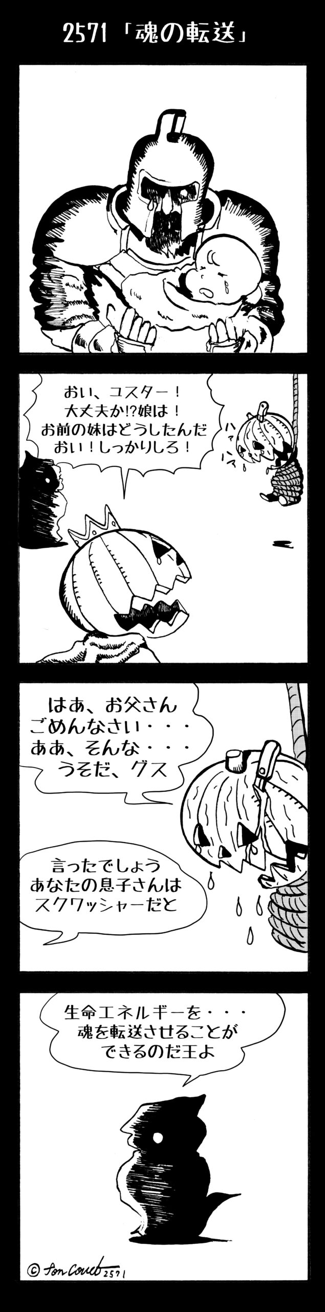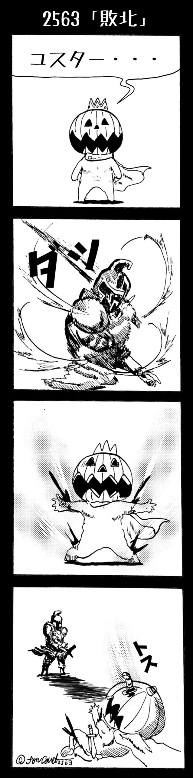 長編シリーズ 【長編】パンプキングダム第三部「ダンの研究所」 2023年8月11日 2025年9月10日 jon covet 長編シリーズ【長編】パンプキングダム第一部「パンプキングダムへ」MON MON MONSTER長編シリーズ第七弾。 パンプキングダム第一部 スプリングウェルに突如現れ町をめちゃくちゃにする謎のカボチャ男。そして彼を狙う黒ずくめの男。ひょんなはずみでタルトとサラマンダーも二人のいざこざに巻き込まれてしまい辿り着いた場所は聞いたこともない名前の王国「パンプキングダム... 長編シリーズ【長編】パンプキングダム第二部「戦士の丘」【ここまでのあらすじ】 必死の思いで倒した騎士団長ヤギーにカムラを連れ去られてしまったタルトたち。カムラの最後の言葉は「息子を探せ」。しかし騎士団の副団長であった息子ターナーは先の戦争で亡くなっていることが判明してしまう。しかし一行は一縷の望みを託して墓の場所を知る少女達と共にターナーが眠る墓地「戦... 長編シリーズ【長編】パンプキングダム第三部「ダンの研究所」【ここまでのあらすじ】 戦士の丘で再び襲ってきた騎士団長ヤギーだったがなぜかサラのバッグを狙う盗賊ケンにより逃走に成功する。実はケンこそがカムラの双子の息子のもう一人であることが判明する。伝説のラビットルに乗り一行はひとまず身を隠すためにサラの父親ダンの研究所に向かったのであった・・・ 第三部「ダ... 長編シリーズ【長編】パンプキングダム第四部「カブリエルとユスター」 【ここまでのあらすじ】 ダンの秘密の研究所に身を隠した一行だったがなぜか騎士団に居処がバレてしまった。迫り来る騎士団をケンとマルフーで圧倒するも謎の鉄仮面の男により全滅をしてしまう。すんでのところで命を取り留めたケンと城に連れ去られたユスターたち。ジッパー君を通してユスターをが過去、そして現在に何... 長編シリーズ【長編】パンプキングダム第五部【ここまでのあらすじ】 暗躍する謎多きカボタリアン、カブリエルにより国を奪われたユスター。一人地下牢で過ごす中で時空を越える妹と同じ力を持ったノレイ王子と出会う。そして彼の力を使い現代に時間転送したのであった。 第一部「時空間転送」 第一章「騎士団長カムラ」 第二章「ノレイの覚醒」 第三章「予期せ... 長編シリーズ【長編】パンプキングダム第六部MON MON MONSTER長編シリーズ第七弾 パンプキングダム第六部 【ここまでのあらすじ】 暗躍する謎多きカボタリアン、カブリエルにより国を奪われたユスター。一人地下牢で過ごす中で時空を越える妹と同じ力を持ったノレイ王子と出会う。そして彼の力を使い現代に時間転送したのであった。 ... 長編シリーズ【長編】パンプキングダム第七部MON MON MONSTER長編シリーズ第七弾 パンプキングダム第七部 【ここまでのあらすじ】 何かを企む現パンプキングダム王ジョソウ。城に潜入したケンだったが無事皆を救出するもそこには狂科学者現騎士団科学部隊隊長のソウムが立ち塞がる。ランタンに火を灯され殺戮マシーンとなったマルフーに殴られ昔... 絵コンテ【長編】パンプキングダム第八部MON MON MONSTER長編シリーズ第七弾 パンプキングダム第八部 【ここまでのあらすじ】 戦いの中で自分がなぜ騎士団になりたかったのかを思い出したケン。伝説の名刀テスターを譲り受け親友のマルフーの動きを止めることに成功したのも束の間、和解したばかりの父の胸を怪人13号の拳が貫いた。 ... 絵コンテ【長編】パンプキングダム第九部ちMON MON MONSTER長編シリーズ第九弾 パンプキングダム第九部 【ここまでのあらすじ】 怒りに燃えるマルフーの拳が城の祝福に火をつけこのままでは大爆発を起こし大陸ごと吹き飛ばしてしまうかもしれない緊急事態に。使命を取り戻した騎士団が暴君ジョソウに反旗を翻し国民を助けるため奔走する中で死ん... 第三部「ダンの研究所」 第一章「契約」 第二章「人に歴史あり」 第三章「ハーベスト」 第四章「カボチャの王国」 第四章「カボチャの王国」 第四章「カボチャの王国」完 第三部完 第四部に進む 第二部に戻る 長編シリーズ【長編】パンプキングダム第一部「パンプキングダムへ」MON MON MONSTER長編シリーズ第七弾。 パンプキングダム第一部 スプリングウェルに突如現れ町をめちゃくちゃにする謎のカボチャ男。そして彼を狙う黒ずくめの男。ひょんなはずみでタルトとサラマンダーも二人のいざこざに巻き込まれてしまい辿り着いた場所は聞いたこともない名前の王国「パンプキングダム... 長編シリーズ【長編】パンプキングダム第二部「戦士の丘」【ここまでのあらすじ】 必死の思いで倒した騎士団長ヤギーにカムラを連れ去られてしまったタルトたち。カムラの最後の言葉は「息子を探せ」。しかし騎士団の副団長であった息子ターナーは先の戦争で亡くなっていることが判明してしまう。しかし一行は一縷の望みを託して墓の場所を知る少女達と共にターナーが眠る墓地「戦... 長編シリーズ【長編】