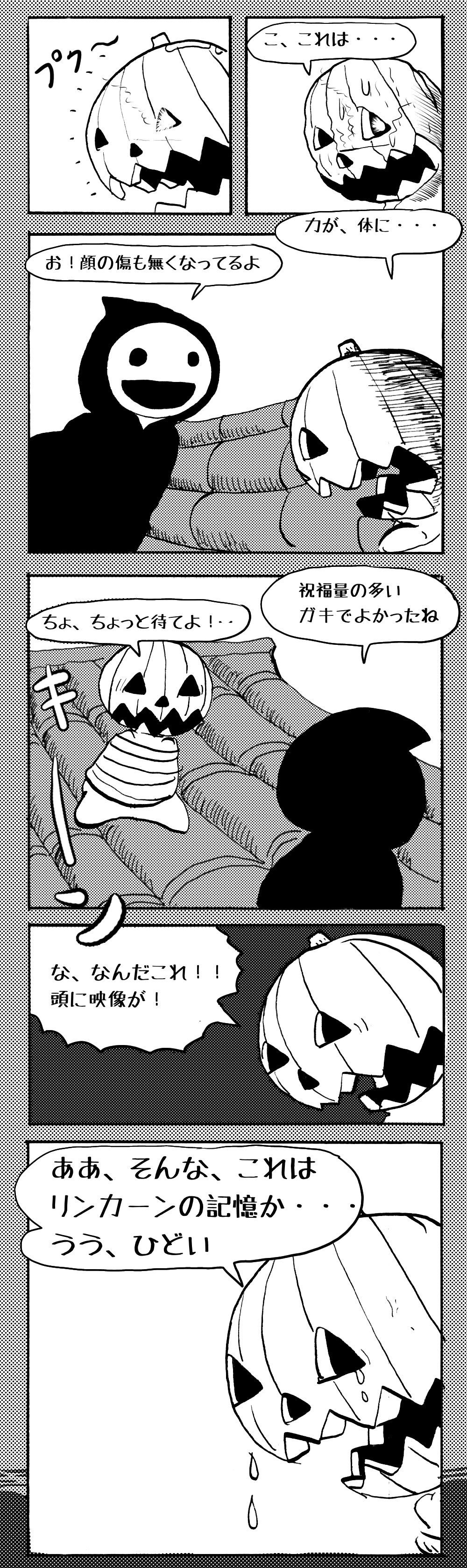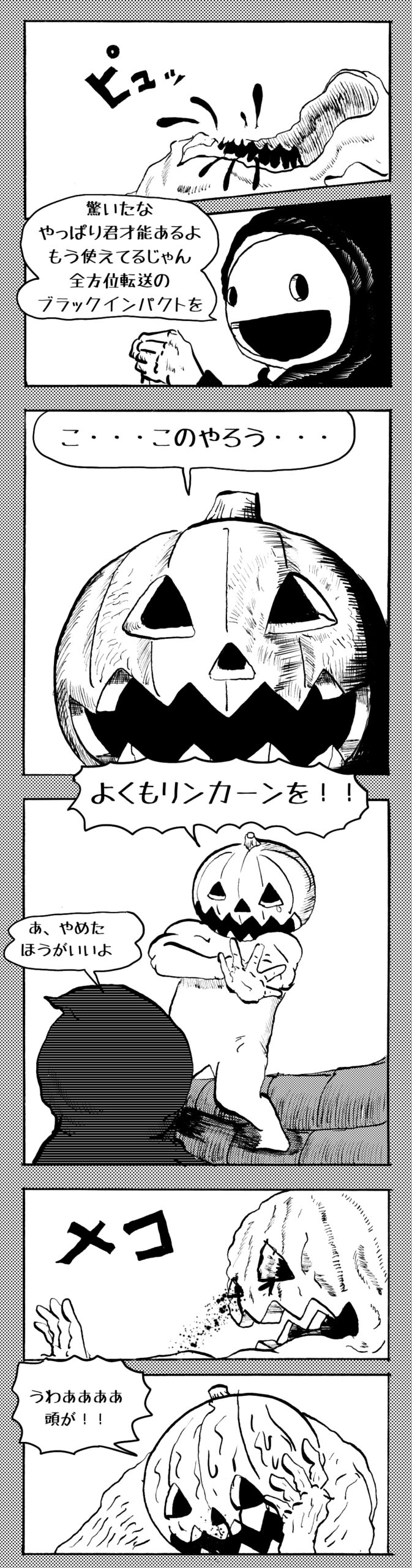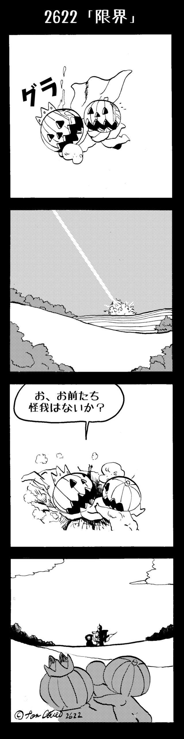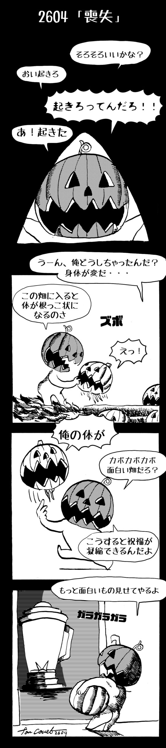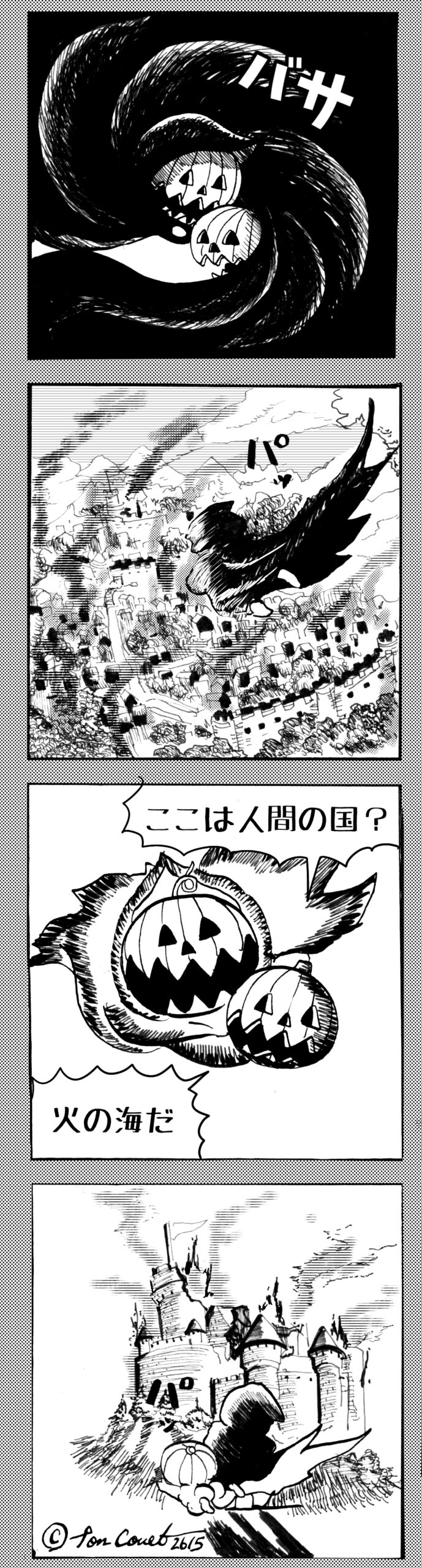 長編シリーズ 【長編】パンプキングダム第四部「カブリエルとユスター」 2023年12月13日 2025年10月11日 jon covet 長編シリーズ【長編】パンプキングダム第一部「パンプキングダムへ」MON MON MONSTER長編シリーズ第七弾。 パンプキングダム第一部 スプリングウェルに突如現れ町をめちゃくちゃにする謎のカボチャ男。そして彼を狙う黒ずくめの男。ひょんなはずみでタルトとサラマンダーも二人のいざこざに巻き込まれてしまい辿り着いた場所は聞いたこともない名前の王国「パンプキングダム... 長編シリーズ【長編】パンプキングダム第二部「戦士の丘」【ここまでのあらすじ】 必死の思いで倒した騎士団長ヤギーにカムラを連れ去られてしまったタルトたち。カムラの最後の言葉は「息子を探せ」。しかし騎士団の副団長であった息子ターナーは先の戦争で亡くなっていることが判明してしまう。しかし一行は一縷の望みを託して墓の場所を知る少女達と共にターナーが眠る墓地「戦... 長編シリーズ【長編】パンプキングダム第三部「ダンの研究所」【ここまでのあらすじ】 戦士の丘で再び襲ってきた騎士団長ヤギーだったがなぜかサラのバッグを狙う盗賊ケンにより逃走に成功する。実はケンこそがカムラの双子の息子のもう一人であることが判明する。伝説のラビットルに乗り一行はひとまず身を隠すためにサラの父親ダンの研究所に向かったのであった・・・ 第三部「ダ... 長編シリーズ【長編】パンプキングダム第四部「カブリエルとユスター」 【ここまでのあらすじ】 ダンの秘密の研究所に身を隠した一行だったがなぜか騎士団に居処がバレてしまった。迫り来る騎士団をケンとマルフーで圧倒するも謎の鉄仮面の男により全滅をしてしまう。すんでのところで命を取り留めたケンと城に連れ去られたユスターたち。ジッパー君を通してユスターをが過去、そして現在に何... 長編シリーズ【長編】パンプキングダム第五部【ここまでのあらすじ】 暗躍する謎多きカボタリアン、カブリエルにより国を奪われたユスター。一人地下牢で過ごす中で時空を越える妹と同じ力を持ったノレイ王子と出会う。そして彼の力を使い現代に時間転送したのであった。 第一部「時空間転送」 第一章「騎士団長カムラ」 第二章「ノレイの覚醒」 第三章「予期せ... 長編シリーズ【長編】パンプキングダム第六部MON MON MONSTER長編シリーズ第七弾 パンプキングダム第六部 【ここまでのあらすじ】 暗躍する謎多きカボタリアン、カブリエルにより国を奪われたユスター。一人地下牢で過ごす中で時空を越える妹と同じ力を持ったノレイ王子と出会う。そして彼の力を使い現代に時間転送したのであった。 ... 長編シリーズ【長編】パンプキングダム第七部MON MON MONSTER長編シリーズ第七弾 パンプキングダム第七部 【ここまでのあらすじ】 何かを企む現パンプキングダム王ジョソウ。城に潜入したケンだったが無事皆を救出するもそこには狂科学者現騎士団科学部隊隊長のソウムが立ち塞がる。ランタンに火を灯され殺戮マシーンとなったマルフーに殴られ昔... 絵コンテ【長編】パンプキングダム第八部MON MON MONSTER長編シリーズ第七弾 パンプキングダム第八部 【ここまでのあらすじ】 戦いの中で自分がなぜ騎士団になりたかったのかを思い出したケン。伝説の名刀テスターを譲り受け親友のマルフーの動きを止めることに成功したのも束の間、和解したばかりの父の胸を怪人13号の拳が貫いた。 ... 絵コンテ【長編】パンプキングダム第九部ちMON MON MONSTER長編シリーズ第九弾 パンプキングダム第九部 【ここまでのあらすじ】 怒りに燃えるマルフーの拳が城の祝福に火をつけこのままでは大爆発を起こし大陸ごと吹き飛ばしてしまうかもしれない緊急事態に。使命を取り戻した騎士団が暴君ジョソウに反旗を翻し国民を助けるため奔走する中で死ん... 第4部「カブリエル」 第一章「戦士長オービット」 第二章「戦争」 第三章「神話の力」 第四章「未来へ」 第二章「戦争」 第二章「戦争」完 次のページ 1 2 3 4 Facebook Twitter はてブ Pocket Feedly