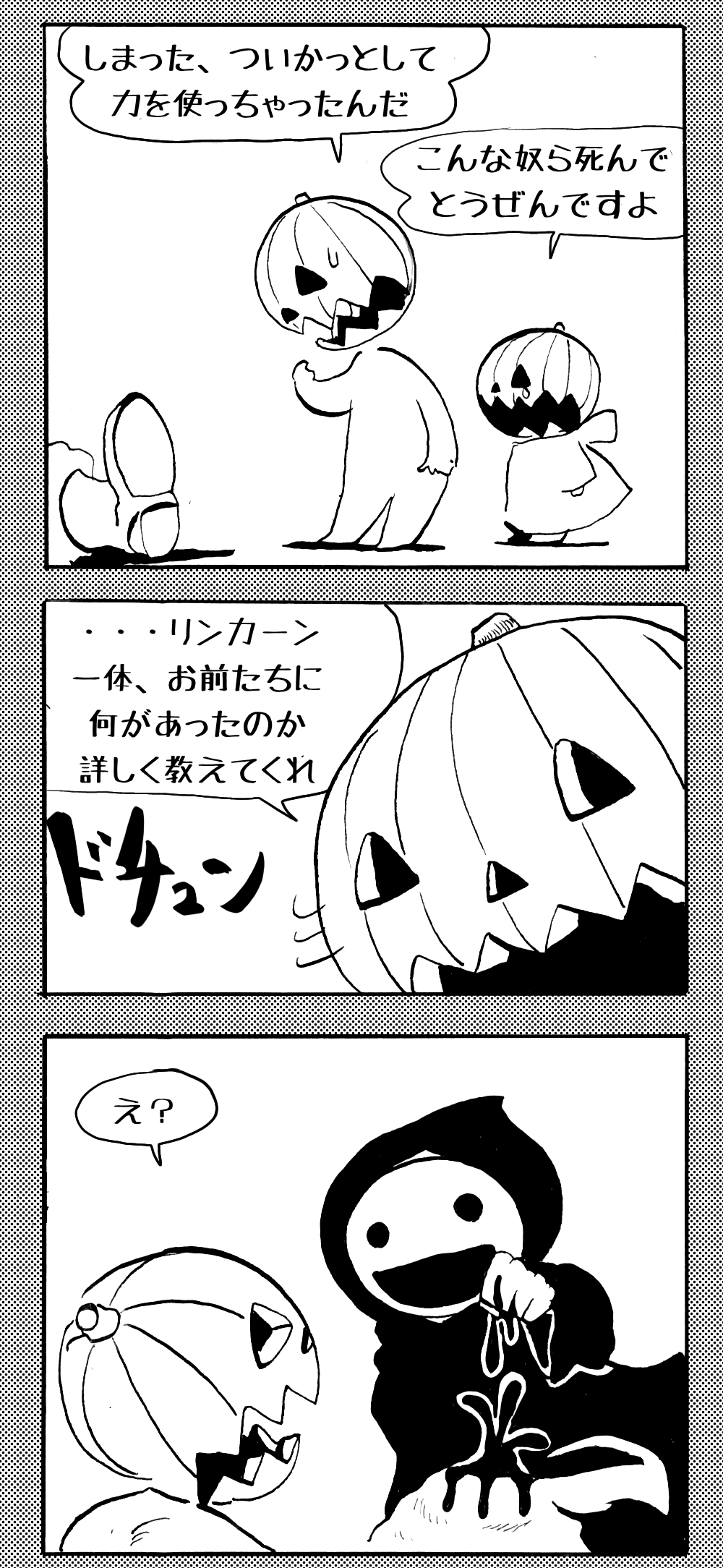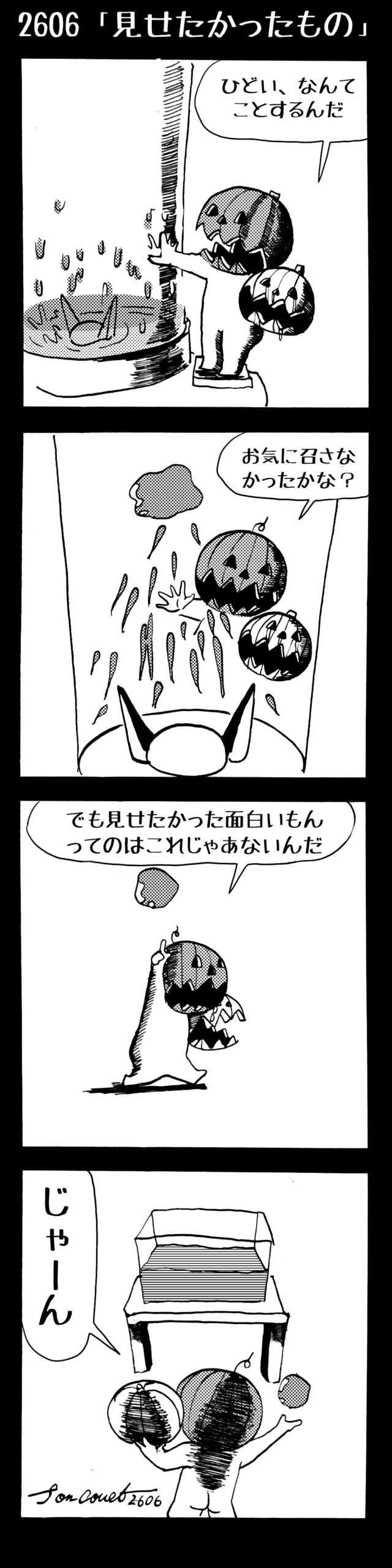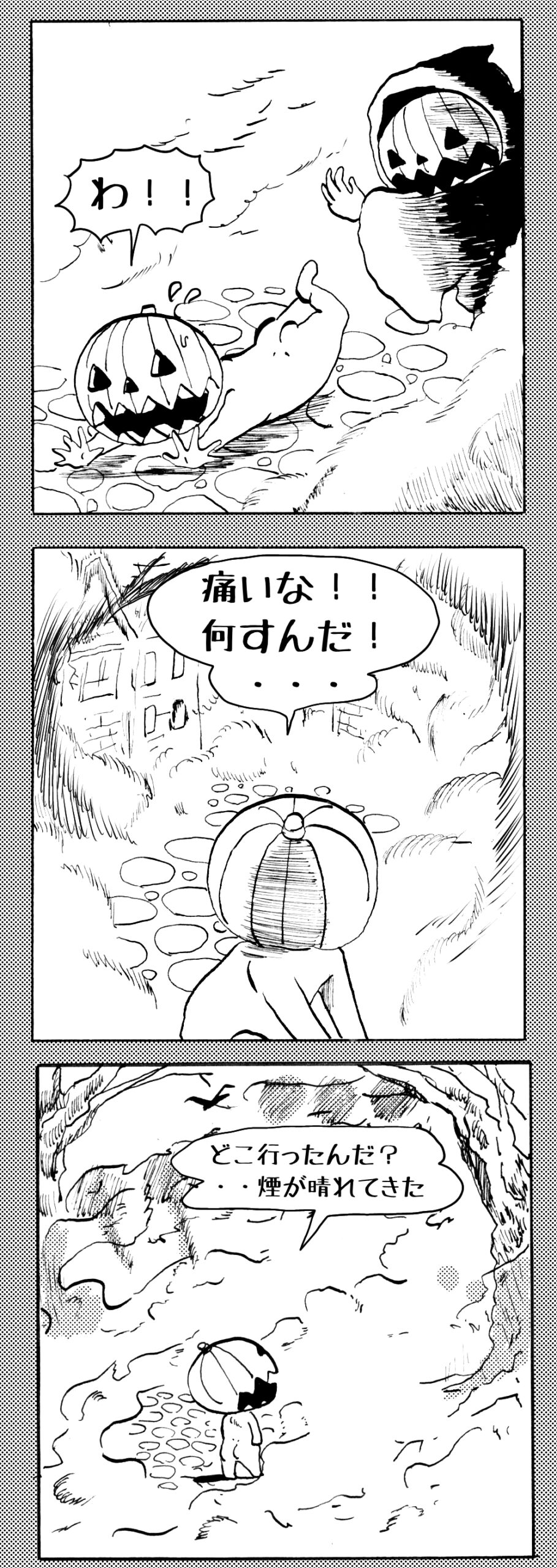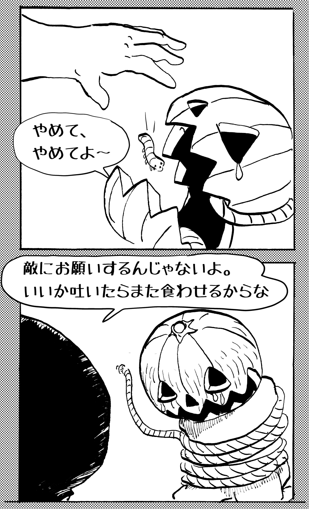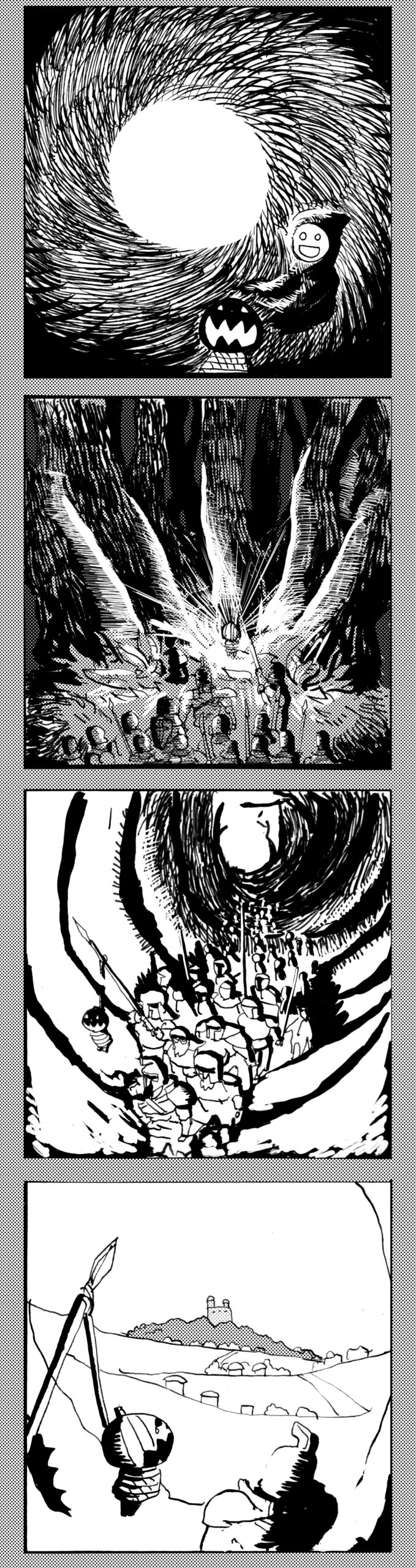 長編シリーズ 【長編】パンプキングダム第四部「カブリエルとユスター」 2023年12月13日 2025年10月11日 jon covet 長編シリーズ【長編】パンプキングダム第一部「パンプキングダムへ」MON MON MONSTER長編シリーズ第七弾。 パンプキングダム第一部 スプリングウェルに突如現れ町をめちゃくちゃにする謎のカボチャ男。そして彼を狙う黒ずくめの男。ひょんなはずみでタルトとサラマンダーも二人のいざこざに巻き込まれてしまい辿り着いた場所は聞いたこともない名前の王国「パンプキングダム... 長編シリーズ【長編】パンプキングダム第二部「戦士の丘」【ここまでのあらすじ】 必死の思いで倒した騎士団長ヤギーにカムラを連れ去られてしまったタルトたち。カムラの最後の言葉は「息子を探せ」。しかし騎士団の副団長であった息子ターナーは先の戦争で亡くなっていることが判明してしまう。しかし一行は一縷の望みを託して墓の場所を知る少女達と共にターナーが眠る墓地「戦... 長編シリーズ【長編】パンプキングダム第三部「ダンの研究所」【ここまでのあらすじ】 戦士の丘で再び襲ってきた騎士団長ヤギーだったがなぜかサラのバッグを狙う盗賊ケンにより逃走に成功する。実はケンこそがカムラの双子の息子のもう一人であることが判明する。伝説のラビットルに乗り一行はひとまず身を隠すためにサラの父親ダンの研究所に向かったのであった・・・ 第三部「ダ... 長編シリーズ【長編】パンプキングダム第四部「カブリエルとユスター」 【ここまでのあらすじ】 ダンの秘密の研究所に身を隠した一行だったがなぜか騎士団に居処がバレてしまった。迫り来る騎士団をケンとマルフーで圧倒するも謎の鉄仮面の男により全滅をしてしまう。すんでのところで命を取り留めたケンと城に連れ去られたユスターたち。ジッパー君を通してユスターをが過去、そして現在に何... 長編シリーズ【長編】パンプキングダム第五部【ここまでのあらすじ】 暗躍する謎多きカボタリアン、カブリエルにより国を奪われたユスター。一人地下牢で過ごす中で時空を越える妹と同じ力を持ったノレイ王子と出会う。そして彼の力を使い現代に時間転送したのであった。 第一部「時空間転送」 第一章「騎士団長カムラ」 第二章「ノレイの覚醒」 第三章「予期せ... 長編シリーズ【長編】パンプキングダム第六部MON MON MONSTER長編シリーズ第七弾 パンプキングダム第六部 【ここまでのあらすじ】 暗躍する謎多きカボタリアン、カブリエルにより国を奪われたユスター。一人地下牢で過ごす中で時空を越える妹と同じ力を持ったノレイ王子と出会う。そして彼の力を使い現代に時間転送したのであった。 ... 長編シリーズ【長編】パンプキングダム第七部MON MON MONSTER長編シリーズ第七弾 パンプキングダム第七部 【ここまでのあらすじ】 何かを企む現パンプキングダム王ジョソウ。城に潜入したケンだったが無事皆を救出するもそこには狂科学者現騎士団科学部隊隊長のソウムが立ち塞がる。ランタンに火を灯され殺戮マシーンとなったマルフーに殴られ昔... 絵コンテ【長編】パンプキングダム第八部MON MON MONSTER長編シリーズ第七弾 パンプキングダム第八部 【ここまでのあらすじ】 戦いの中で自分がなぜ騎士団になりたかったのかを思い出したケン。伝説の名刀テスターを譲り受け親友のマルフーの動きを止めることに成功したのも束の間、和解したばかりの父の胸を怪人13号の拳が貫いた。 ... 絵コンテ【長編】パンプキングダム第九部ちMON MON MONSTER長編シリーズ第九弾 パンプキングダム第九部 【ここまでのあらすじ】 怒りに燃えるマルフーの拳が城の祝福に火をつけこのままでは大爆発を起こし大陸ごと吹き飛ばしてしまうかもしれない緊急事態に。使命を取り戻した騎士団が暴君ジョソウに反旗を翻し国民を助けるため奔走する中で死ん... 第4部「カブリエル」 第一章「戦士長オービット」 第二章「戦争」 第三章「神話の力」 第四章「未来へ」 第二章「戦争」 第二章「戦争」完 次のページ 1 2 3 4 Facebook Twitter はてブ Pocket Feedly