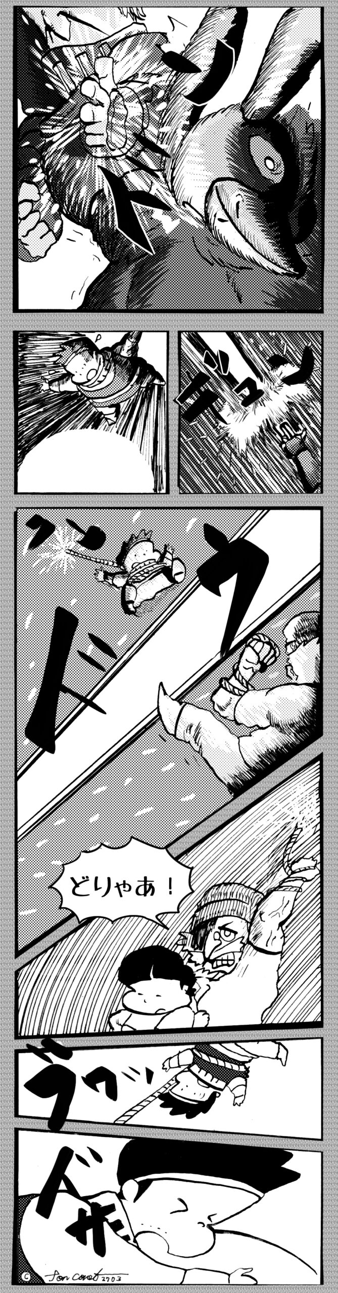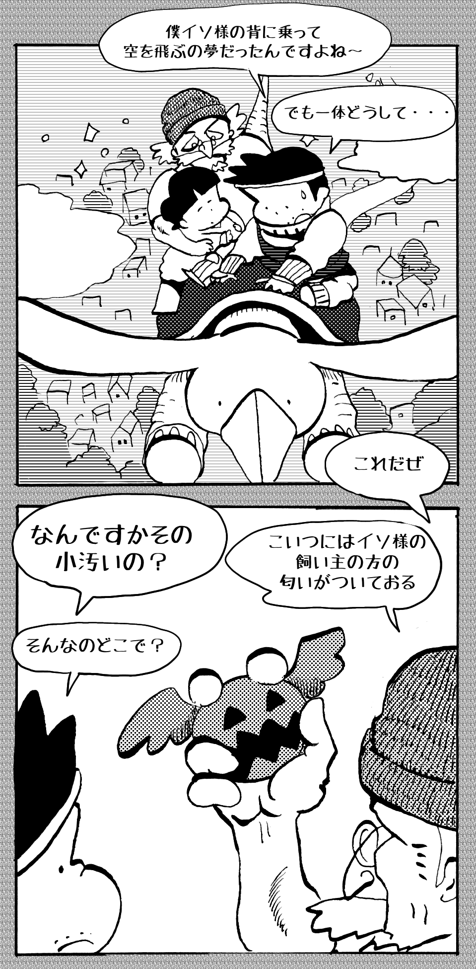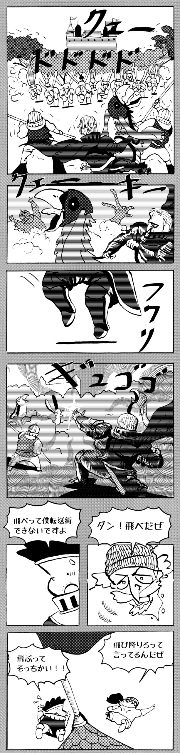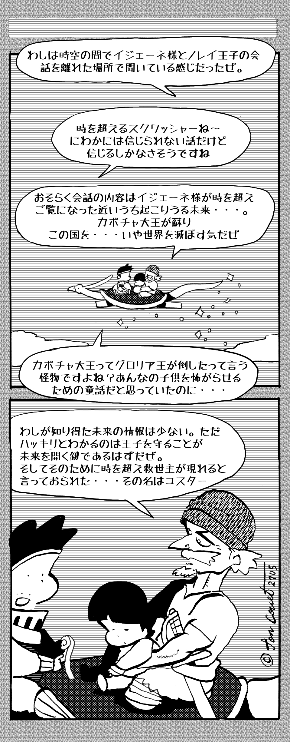 長編シリーズ 【長編】パンプキングダム第五部 2024年3月21日 2026年2月5日 jon covet 長編シリーズ【長編】パンプキングダム第一部「パンプキングダムへ」MON MON MONSTER長編シリーズ第七弾。 パンプキングダム第一部 スプリングウェルに突如現れ町をめちゃくちゃにする謎のカボチャ男。そして彼を狙う黒ずくめの男。ひょんなはずみでタルトとサラマンダーも二人のいざこざに巻き込まれてしまい辿り着いた場所は聞いたこともない名前の王国「パンプキングダム... 長編シリーズ【長編】パンプキングダム第二部「戦士の丘」【ここまでのあらすじ】 必死の思いで倒した騎士団長ヤギーにカムラを連れ去られてしまったタルトたち。カムラの最後の言葉は「息子を探せ」。しかし騎士団の副団長であった息子ターナーは先の戦争で亡くなっていることが判明してしまう。しかし一行は一縷の望みを託して墓の場所を知る少女達と共にターナーが眠る墓地「戦... 長編シリーズ【長編】パンプキングダム第三部「ダンの研究所」【ここまでのあらすじ】 戦士の丘で再び襲ってきた騎士団長ヤギーだったがなぜかサラのバッグを狙う盗賊ケンにより逃走に成功する。実はケンこそがカムラの双子の息子のもう一人であることが判明する。伝説のラビットルに乗り一行はひとまず身を隠すためにサラの父親ダンの研究所に向かったのであった・・・ 第三部「ダ... 長編シリーズ【長編】パンプキングダム第四部「カブリエルとユスター」 【ここまでのあらすじ】 ダンの秘密の研究所に身を隠した一行だったがなぜか騎士団に居処がバレてしまった。迫り来る騎士団をケンとマルフーで圧倒するも謎の鉄仮面の男により全滅をしてしまう。すんでのところで命を取り留めたケンと城に連れ去られたユスターたち。ジッパー君を通してユスターをが過去、そして現在に何... 長編シリーズ【長編】パンプキングダム第五部【ここまでのあらすじ】 暗躍する謎多きカボタリアン、カブリエルにより国を奪われたユスター。一人地下牢で過ごす中で時空を越える妹と同じ力を持ったノレイ王子と出会う。そして彼の力を使い現代に時間転送したのであった。 第一部「時空間転送」 第一章「騎士団長カムラ」 第二章「ノレイの覚醒」 第三章「予期せ... 長編シリーズ【長編】パンプキングダム第六部MON MON MONSTER長編シリーズ第七弾 パンプキングダム第六部 【ここまでのあらすじ】 暗躍する謎多きカボタリアン、カブリエルにより国を奪われたユスター。一人地下牢で過ごす中で時空を越える妹と同じ力を持ったノレイ王子と出会う。そして彼の力を使い現代に時間転送したのであった。 ... 長編シリーズ【長編】パンプキングダム第七部MON MON MONSTER長編シリーズ第七弾 パンプキングダム第七部 【ここまでのあらすじ】 何かを企む現パンプキングダム王ジョソウ。城に潜入したケンだったが無事皆を救出するもそこには狂科学者現騎士団科学部隊隊長のソウムが立ち塞がる。ランタンに火を灯され殺戮マシーンとなったマルフーに殴られ昔... 絵コンテ【長編】パンプキングダム第八部MON MON MONSTER長編シリーズ第七弾 パンプキングダム第八部 【ここまでのあらすじ】 戦いの中で自分がなぜ騎士団になりたかったのかを思い出したケン。伝説の名刀テスターを譲り受け親友のマルフーの動きを止めることに成功したのも束の間、和解したばかりの父の胸を怪人13号の拳が貫いた。 ... 絵コンテ【長編】パンプキングダム第九部ちMON MON MONSTER長編シリーズ第九弾 パンプキングダム第九部 【ここまでのあらすじ】 怒りに燃えるマルフーの拳が城の祝福に火をつけこのままでは大爆発を起こし大陸ごと吹き飛ばしてしまうかもしれない緊急事態に。使命を取り戻した騎士団が暴君ジョソウに反旗を翻し国民を助けるため奔走する中で死ん... 第一部「時空間転送」 第一章「騎士団長カムラ」 第二章「ノレイの覚醒」 第三章「予期せぬ来訪」 第四章「城内への転送」 第一章「ノレイの覚醒」 第二章「ノレイの覚醒」完 次のページ 1 2 3 4 Facebook Twitter はてブ Pocket Feedly