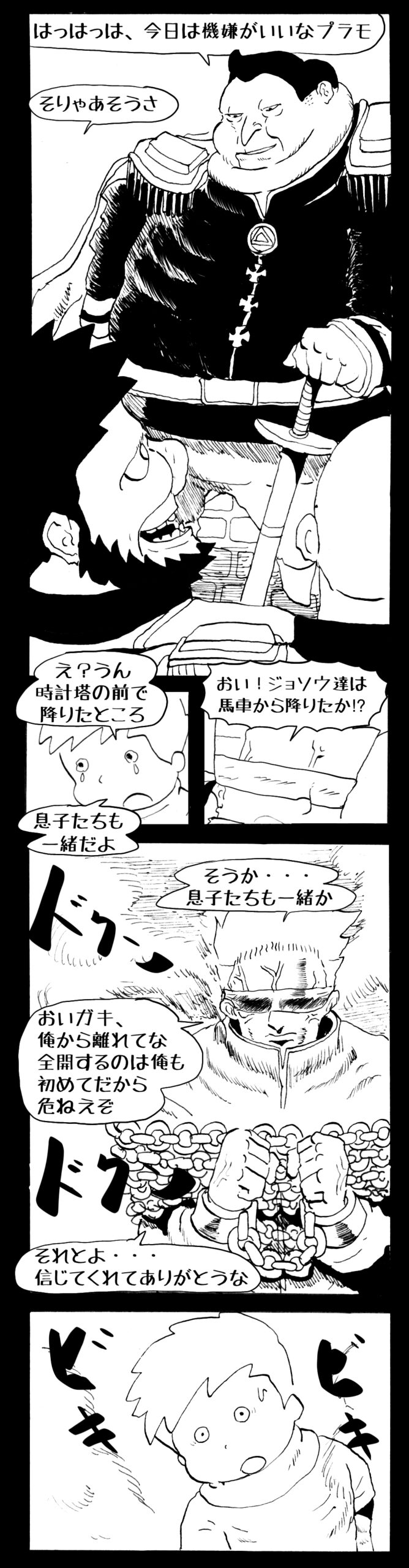 暗躍する謎多きカボタリアン、カブリエルにより国を奪われたユスター。一人地下牢で過ごす中で時空を越える妹と同じ力を持ったノレイ王子と出会う。そして彼の力を使い現代に時間転送したのであった。