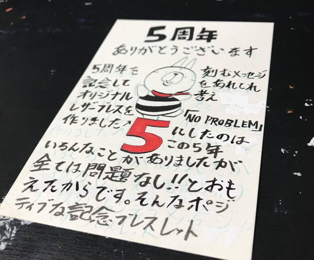 ありがたくその言葉を採用させてもらい5周年レザーブレスレットを完成させ、昨日イベント参加中のプライムツリーに納品してまいりました。